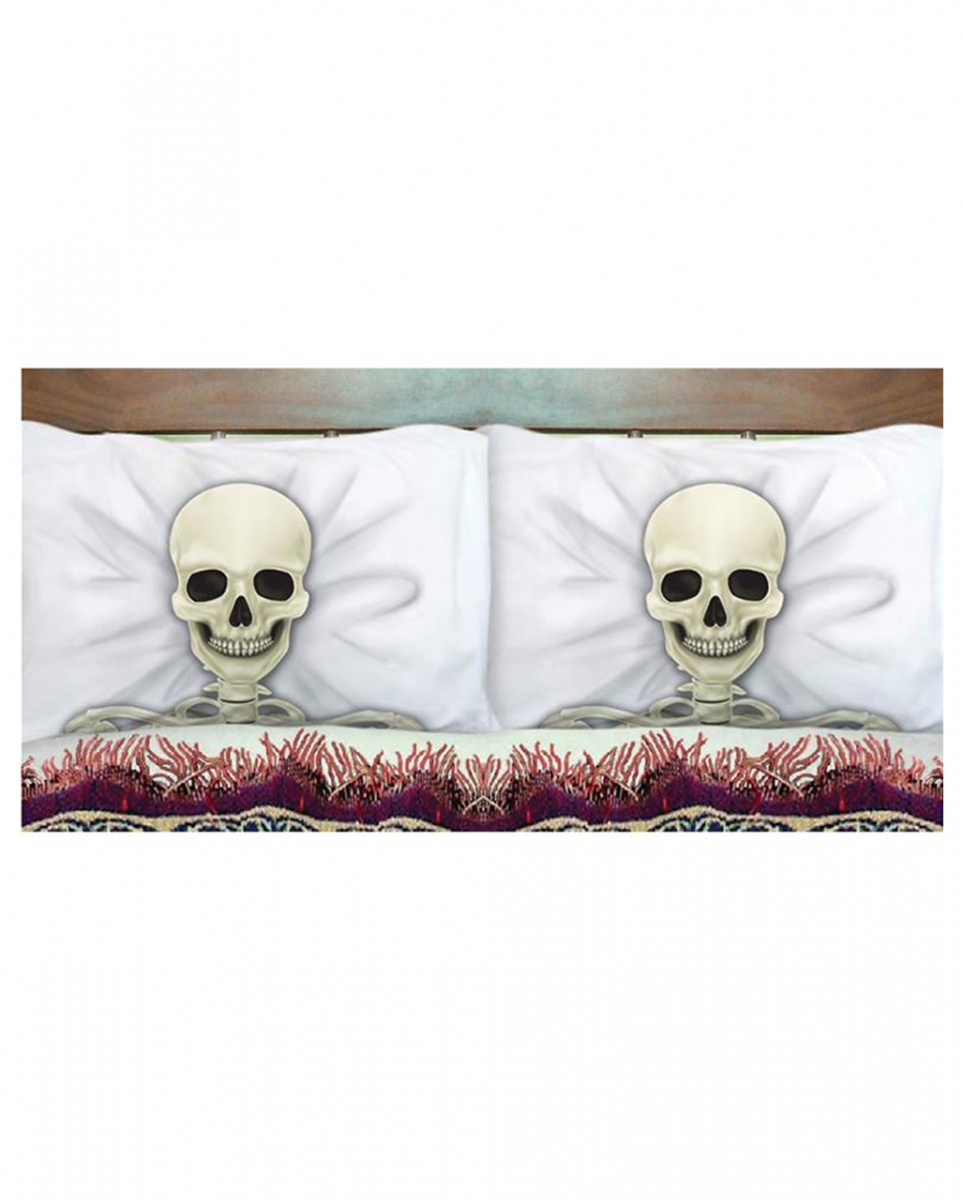 2 Kopfkissenbezüge mit Skelettaufdruck 80×50 cm für Halloween Totenkopf Kissenbezüge als lustige Schlafzimmer Dekoration für Halloween Fans Mit den Kopfkissenbezügen mit Skelettaufdruck sorgst du jetzt auch im Schlafzimmer für ein schauriges Flair. Friedlich schlummernd liegen die beiden Skelette in deinem Bett und ruhen ihren Totenkopf auf deinem Kissen aus. Hol dir die Kopfkissenbezüge mit Skelettaufdruck als witzigen Hingucker für dein Schlafzimmer. Die beiden weißen Kopfkissenbezüge sind jeweils 80 × 50 groß. Die Kissenbezüge sind aus Polyester und haben als Motiv beide ein liegendes Skelett aufgedruckt. Lieferumfang: 1 x 2 Kopfkissenbezüge mit Skelettaufdruck 80x50cm Inhalt: 2 Stück Farbe: Weiß, Beige, Schwarz Größe: ca. 80 x 50 cm Material: 100% Polyester Lustige Idee für deine Halloween-Schlafzimmerdekoration Beide Kissenbezüge haben jeweils ein Skelett-Kopf als Motiv Der Artikel ist ein Deko Zzubehör für Erwachsene und kein Spielzeug. Nicht für Kinder unter 3 Jahren geeignet. Kann Kleinteile enthalten, die verschluckt werden können – Erstickungsgefahr. Von Feuer und offenen Flammen fernhalten.