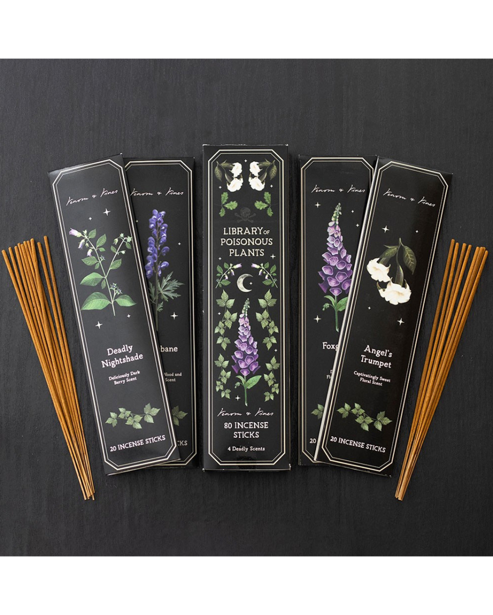 80 St. „Giftpflanzen", Räucherstäbchen 4 Sorten als Gothic Accessoire Botanik Räucherstäbchen mit Pflanzenmotiven Die 80 St. Giftpflanzen Räucherstäbchen 4 Sorten als Gothic Accessoire helfen dir bei der Durchführung magischer Rituale. Sie können zur Entspannung beitragen und bereichern jedes magische Ritual. Verziert mit magischen Giftpflanzen, bereichert dieses umfangreiche Räucherstäbchen-Set jede Okkult-Sammlung. Die Verpackung zeigt eindrucksvoll illustrierte Motive von Giftpflanzen und Hexenkräutern in satten Farben wie Violett, Grün und Schwarz. Lieferumfang: 1 × 80 St. „Giftpflanzen“ Räucherstäbchen 4 Sorten als Gothic Accessoire Inhalt: 80 Stück Farbe: Schwarz, Violett, Grün, Braun Größe: ca. 31 × 8 × 4 cm Material: Rauchwerk Berauschende Räucherstäbchen mit botanischem Thema Gothic-Räucherstäbchen im Set Pflanzen-Design Ein wunderbares Geschenk für Räucherstäbchenliebhaber mystischer Aromen