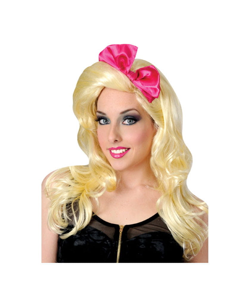 80´s Pop Girl Perücke mit pinker Schleife Toupiert mit Stil und Pink Schrill und laut wird es mit der 80´s Pop Girl Perücke mit pinker Schleife. Die süße Pop Perücke sorgt für die perfekte Haartracht bei der nächsten 80er Jahre Revival Party. Antoupierte Haare kommen nie aus der Mode, wenn sie so unverschämt gut aussehen wie bei der Popstar Perücke. Die schrille 80´s Pop Girl Perücke mit pinker Schleife ist aus blondem Kunsthaar gefertigt und am Oberkopf stark antoupiert. Über den auf rechts gekämmten Seitenscheitel ist eine neckische Schleife in Knallpink befestigt. Die Gesamthaarlänge beträgt 62cm. Das eingearbeitete elastische Haarnetz sorgt für ein leichtes Aufsetzen und guten Halt der Popstar Perücke. Inhalt: 1 x 80´s Pop Girl Perücke mit pinker Schleife Farbe: blond Länge: ca. 62 cm Material: 100% Kunsthaar Größe: Einheitsgröße für Erwachsene Achtung: Dieser Artikel ist ein Kostümzubehör für Erwachsene. Es ist kein Spielzeug. Von offenem Feuer fernhalten. Nicht Hitzebeständig, deshalb nicht mit Glätteisen oder Lockenstab behandeln.
