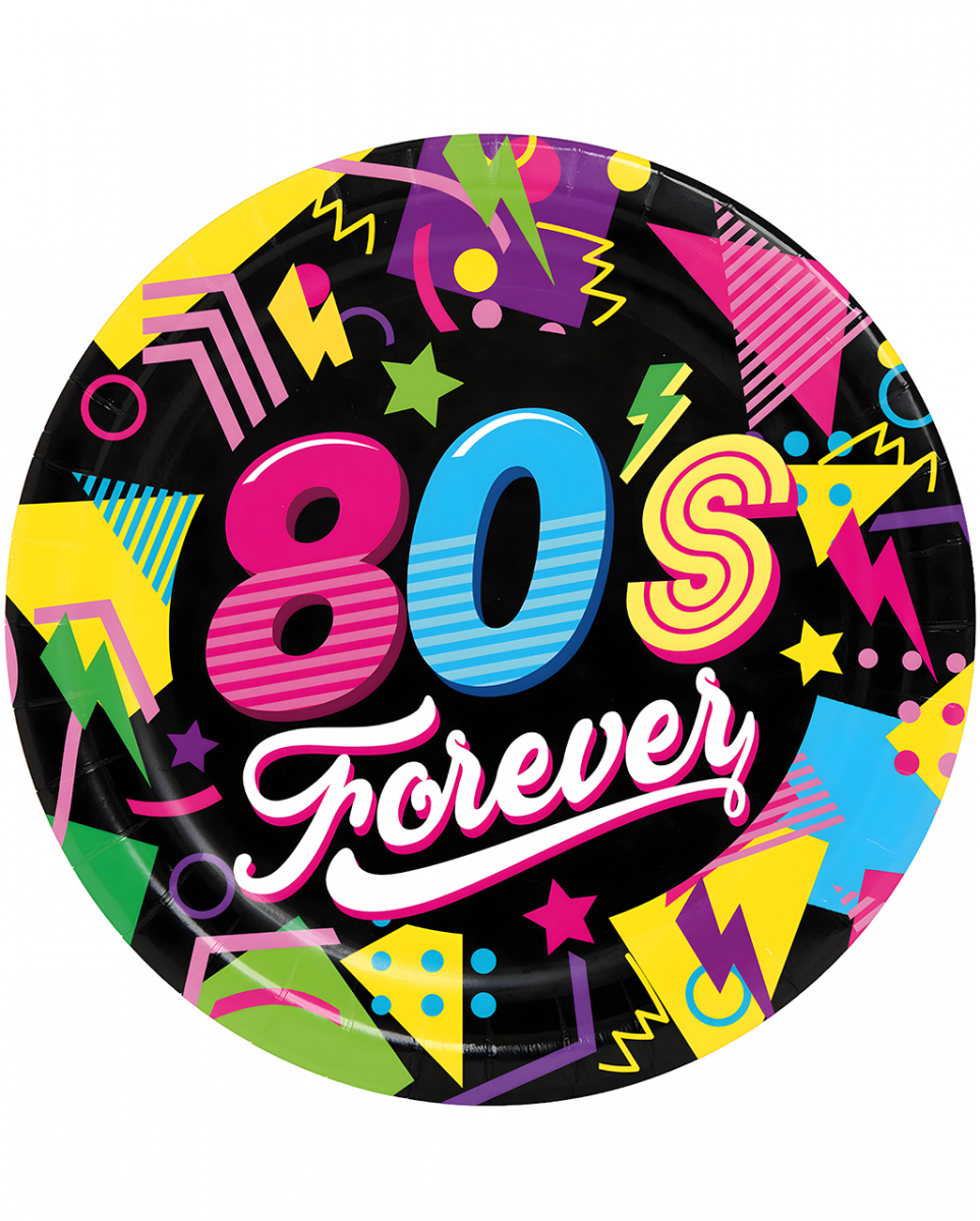 80’s Forever Pappteller für Mottopartys 6 Stück Farbenfrohe Einwegteller für 80er Jahre Themenfeten Tauche ein in die schillernde Welt der 80er Jahre mit den 80’s Forever Papptellern. Verwandle deine Party in eine Zeitreise voller Neonfarben und Vokuhila-Frisuren. Die farbenfrohen Designs werden deine Gäste begeistern und sie sofort in die Vergangenheit versetzen. Unsere 80’s Forever Pappteller kommen im praktischen Set mit 6 Stück zu dir nach Hause. Jeder Teller hat eine Größe von ca. 23 cm. Die leuchtenden Farben und das auffällige Design machen die Einmalteller zu einem echten Highlight auf deinem Fest. Lieferumfang: 1 x 80’s Forever Pappteller für Mottopartys 6 Stück Inhalt: 6 Stück Farbe: Schwarz, Pink, Blau, Gelb, Lila, Weiß, Grün Größe: ca. 23 cm Material: Pappe Bunte 80ies Einmalteller 80er Jahre Tischdeko