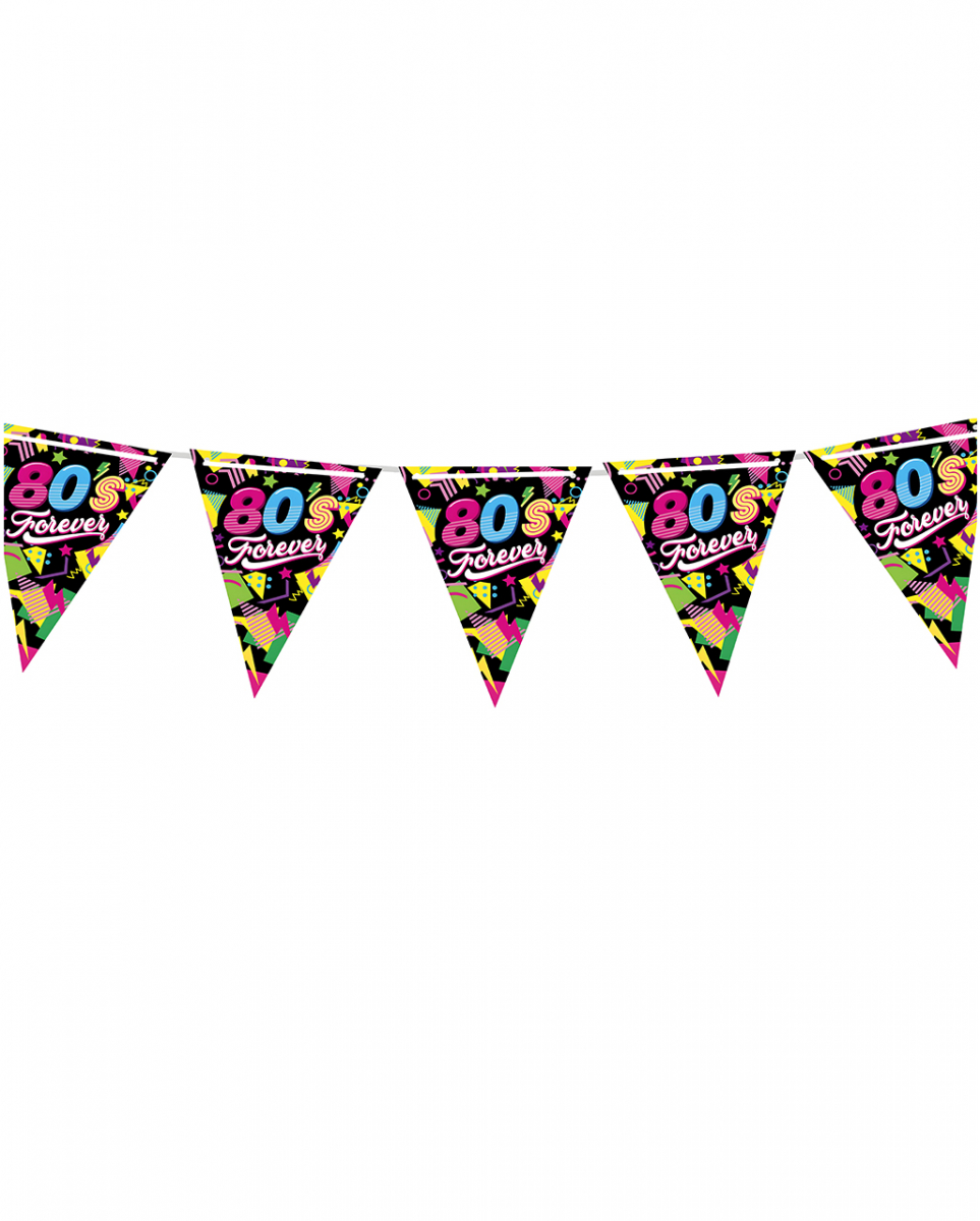 80’s Forever Wimpelgirlande für Mottopartys 3m Farbenfrohe Girlande zum Aufhängen an 80er Jahre Themenfeten Lass dich von der 80’s Forever Wimpelgirlande in eine Zeit voller Farben und Lebensfreude entführen. Deine Gäste werden begeistert sein von dem bunten Design und sich sofort in die Ära der Neonfarben zurückversetzt fühlen. Unsere 80’s Forever Wimpelgirlande hat eine Länge von ca. 3 Metern und besteht aus Papier. Jeder einzelne Wimpel hat die Maße von ca. 20 x 30 cm und ist somit groß genug, um auch in größeren Räumen gut zur Geltung zu kommen. Dank der kräftigen Farben wird deine Partylocation zum Blickfang und zieht alle Blicke auf sich. Lieferumfang: 1 x 80’s Forever Wimpelgirlande für Mottopartys 3m Farbe: Schwarz, Pink, Blau, Gelb, Lila, Weiß, Grün Größe: Länge ca. 3 m, Wimpel ca. 20 x 30 cm Material: Papier Bunte 80ies Girlande 80er Jahre Hänge-Deko