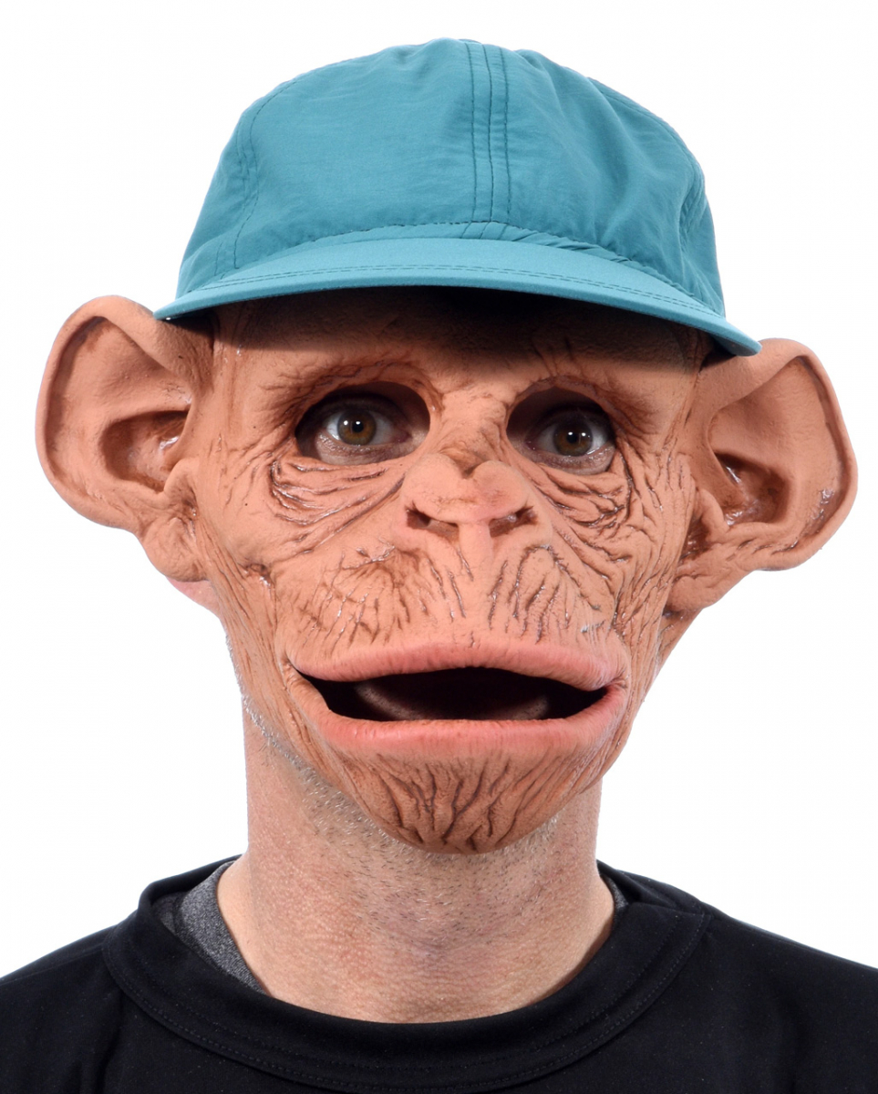 Schimpansen Maske mit Baseball Mütze Lustige Affenmaske mit beweglichem Kiefer Die hochwertige Affenmaske zeigt ein realistisches Schimpansengesicht und lässt sich durch das bewegliche Kiefer, auch mit dememtsprechenden Mimik versehen. Als frecher Schimpanse maskiert, kannst du lustige Späßchen treiben. Du kannst damit natürlich auch gruselig maskiert sein und damit im Stil von “Planet der Affen” eine Revolution anführen. Mit der Affenmaske eines Schimpansen sind viele Möglichkeiten offen. Die tierische Affenmaske aus hochwertigem Latex gearbeitet und ist von Hand bemalt. Dank des beweglichen Kiefers sorgt die Tiermaske für einen besonders realistischen Schimpansen Look. Lieferumfang: 1 x Affen Maske Deluxe Farbe: Hautfarben/Braun/Beige Größe: 3/4 Maske Material: Latex, Baseball Mütze 100% Polyester Farbe der Baseball Mütze kann varrieren