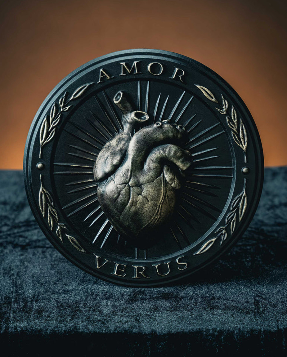 Amor Verus Wandtafel als Vintage Relief 19,5 cm Menschliches Herz als Mystik-Wanddekoration Die Amor Verus Wandtafel als Vintage Relief ist ein wunderschönes Gothic-Wohnaccessoire von den Künstlern von the Blackened Teeth. Das Rundrelief zeigt ein anatomisches Herz, umgeben von Aura und Ähren. Dieses Gothic-Kunstwerk für die Wand ist aus Kunststein gefertigt und mit goldenen Akzenten designt. Es handelt sich um eine Gothic-Wanddekoration, die in Schwarz-Gold gehalten ist und über eine rückseitige Aufhängung verfügt. Lieferumfang: 1 x Amor Verus Wandtafel als Vintage Relief 19,5cm Farbe: Schwarz, Gold Größe: ca. 19,5 x 19,5 cm Material: Polyresin (Kunststein) ",Amor Versus", Deko von The Blackened Teeth Wandsymbol für unvergängliche Liebe Gothic Wandobjekt mit anatomischem Herz Das Herz ist umgeben von Strahlen der Aura Der Schriftzug ",Amor Versus", ziert die Außenseite der runden, schwarzen Wandtafel Morbide Wohndekoration mit Gold Akzenten Auf der Rückseite der Wandtafel befindet sich ein Sägezahn-Hacken zum Aufhängen Wird in Geschenkverpackung geliefert Hergestellt von den renommierten Gothic-Künstlern von Blackened Teeth
