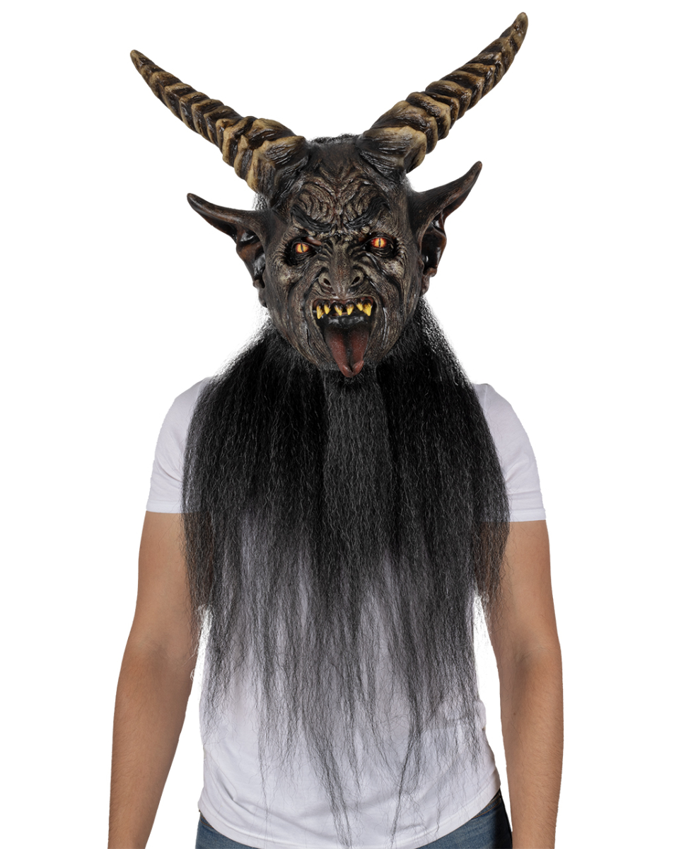 Anthromorph Krampus Maske aus Latex mit Kunsthaar Unheimliche gehörnte Monstermaske für Weihnachten und Fasching Beschere den kleinen Kindern Alpträume und verkleide dich mit der Anthromorph Krampus Maske aus Latex mit Kunsthaar. Diese düstere Prechtenmaske überzeugt mit realistischen Details und höchstem Tragekomfort. Unsere Anthromorph Krampus Maske aus Latex mit Kunsthaar hat eine rote, lange Zunge und bedrohlich wirkende Reißzähne. Die Krampus Vollkopfmaske ist aus Latex gefertigt und mit Kunsthaar besetzt. Lieferumfang: 1 x Anthroprecht Krampus Maske Farbe: Braun, Beige, Schwarz, Gelb Größe: Vollkopfmaske mit langen Haaren und Bart Material: Latex, Kunsthaar Krampus Kostümaccessoire Mit Kunstfell besetzte Prechtenmaske mit Hörnern Zotteliges Kunsthaar am Hinterkopf und langer Ziegenbart auf der Frontseite Lange Zunge, fiese Zähne und lodernde Augen als Blickfang Maskiere die jetzt als Kinderschreck der so ",friedlichen",Weihnachtszeit Handgearbeitet und bemalt