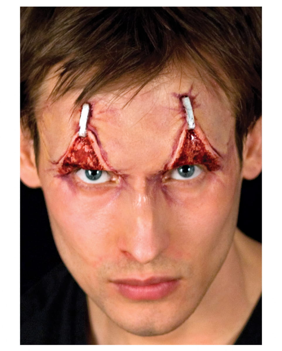 Augenlidstraffung Halloween Latexwunde als Horror und Special FX Make-Up Krasse Halloween Latexwunde für dein Horror Make-Up Du möchtest ein blutiges Halloween Make-Up und deine Freunde mal so richtig schockieren? Dann benutze eine fertige Latexwunde wie z.B. unsere Augenlidstrafung Latexwunde. Einfach mit etwas Hautkleber aufkleben, mit Make-Up und Filmblut kaschieren und fertig ist das Horror Make-Up! Die krasse Augenlidstrafungs Latexwunde ist bereits vorcoloriert und besteht aus hochwertigem Latex. Einfach mit etwas Hautkleber oder Flüssiglatex auf die gewünschte Hautstelle montieren und im Anschluss mit Halloween Schminke und Filmblut kaschieren. Nach dem Gebrauch, kannst du die Latexapplikation einfach wieder entfernen und immer wieder verwenden. Mastix Hautkleber, Flüssiglatex und Filmblut nicht inkl. Lieferumfang: 1 x Augenlidstraffung Halloween Latexwunde als Horror und Special FX Make-Up Inhalt: 1 x Latex Applikation Farbe: Hautfarben, Rot Material: Latex Blutiges Halloween Make-Up selber schminken Hautkleber, Flüssiglatex und Blut nicht inkl.
