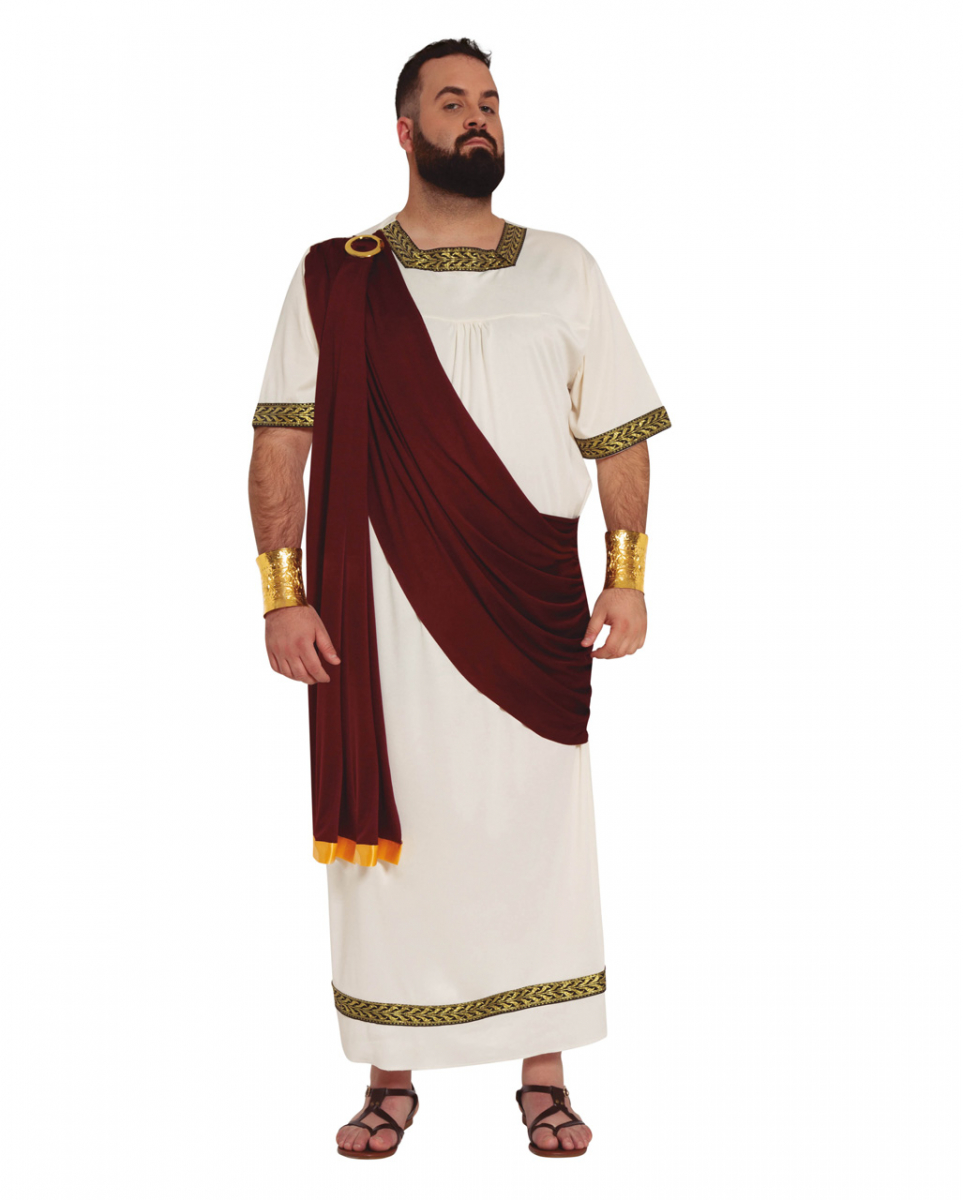Römisches Kaiser Augustus Kostüm Historische Toga für Karneval und Mottopartys In dem Römischen Kaiser Augustus Kostüm regierst du als Erbe von Julius Caesar über das mächtigste Reich der Antike mit strenger Hand. Das Römische Kaiser Augustus Kostüm ist eine lange weiße Toga, die mit einer roten Schärpe und einer goldenen Schnalle auf der Schulter geschmückt ist. Die Säume an Hals und Ärmeln sowie der untere Bereich des Gewands sind mit gold-schwarzen Bordüren verziert. Lieferumfang: 1 x Römisches Kaiser Augustus Kostüm Inhalt: 1 x Toga mit Schärpe Farbe: weiß/rot/gold/schwarz Größe: L 52/54, XL 54/56 Material: 100% Polyester Schuhe, Schmuck und Kranz nicht Inklusive Achtung: Der Artikel ist ein Kostüm für Erwachsene und kein Spielzeug. Nicht für Kinder unter 3 Jahren geeignet. Kann Kleinteile etnhalten, die verschluckt werden können. Es besteht dadurch Erstickungsgefahr. Vor Feuer und Flammen entfernt halten