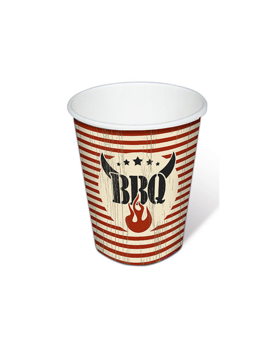 BBQ Grillparty Pappbecher 10 Stück für die Grillparty, Grillabende und das perfekte Barbecue Praktische Einwegbecher im lässigen Vintage Style Die Temperaturen werden zweistellig, das kann nur eines bedeuten: Die Grillsaison ist eröffnet. Wahrscheinlich stehen Deine Kumpels schon längst in den Startlöchern. Passendes Geschirr habt Ihr hiermit auch schon gefunden. Mit dem BBQ Grillparty Pappbecher 10 Stück seid Ihr für die besten Abende im Jahr gerüstet. Also ran an den Speck und hoch die Becher! Das Retro-Design mit den roten Längsstreifen zeigt, was für ein Profi Du in Sachen BBQ bist. Die Hörner und die roten Flamme symbolisieren, dass Dein BBQ nix für Weicheier ist. Die stylish krassen Barbecue Grillparty Pappbecher 10 Stück besitzen ein Fassungsvermögen von o,2 Liter, also perfekt für Bier oder Softdrink. Sie sind aus Pappe hergestellt, so dass sie anschließend ins Altpapier können. Lieferumfang: 1x Barbecue Grillparty Pappbecher 10 Stück Inhalt: 10x Pappbecher Größe: 0,2 Liter Farbe: Beige, Rot, Schwarz Material: Pappe Von Feuer und offenen Flammen fernhalten.