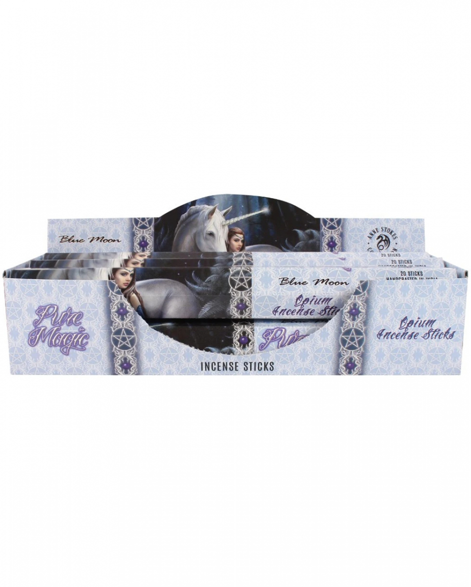 20 Stück Blue Moon Räucherstäbchen für Gothic Rituale Mystische, nach Opium duftende Räucherstäbchen aus der Anne Stokes Kollektion Die Blue Moon Räucherstäbchen verströmen den Duft, der deine Sinne beruhigt und sie öffnet für eine neue Erfahrung. Höchstes Wohlbefinden und einen Hauch Ekstase machen den Opium Duft zum idealen Begleiter für Zeremonien oder entspannende Meditationen. Unsere Blue Moon Räucherstäbchen mit Opium Duft sind natürlich auch ein mega Geschenkartikel für Gothic oder Halloween Fans. Die Verpackung wurde von der Künstlerin Anne Stokes mit einem wunderbaren Einhorn und Elfen Motiv versehen. Lieferumfang: 1 x Blue Moon Räucherstäbchen 20 St. Inhalt: 20 Stück Größe: ca. 23 cm Material: Räucherstäbchen Duft: Opium Wohlriechende Räucherstäbchen als Gothic Wohnaccessoire Hellblau-lila Verpackung mit Einhorn und Elfe von Anne Stokes Wunderbares Gothic Geschenk und Mitbringsel Nicht für Kinder unter 3 Jahren geeignet. Kann Kleinteile enthalten, die verschluckt werden können – Erstickungsgefahr.