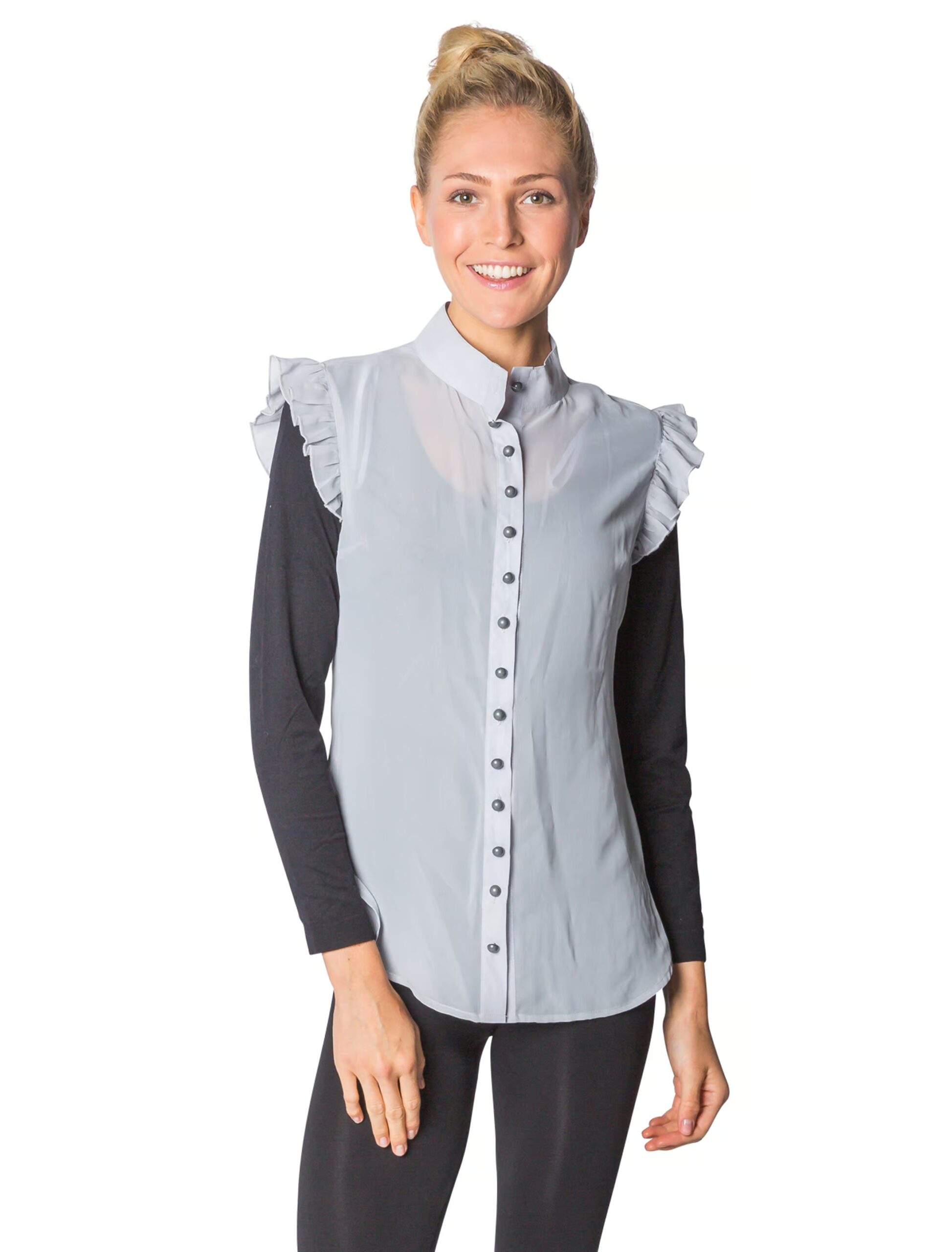 Wunderschöne, leicht fallende und transparente Bluse, die nicht nur auf Karnevals- und Mottopartys Deine feminine Seite betont. Auch im Alltag ist die Bluse, die aus einem hellgrauen Stoff besteht, ein tolles Kleidungsstück. Hingucker sind nicht nur die gerafften und mit Tüll bestückten Ärmel, sondern auch der Stehkragen sowie die Knopfleiste in der Front. Eine Bluse zum Verlieben!