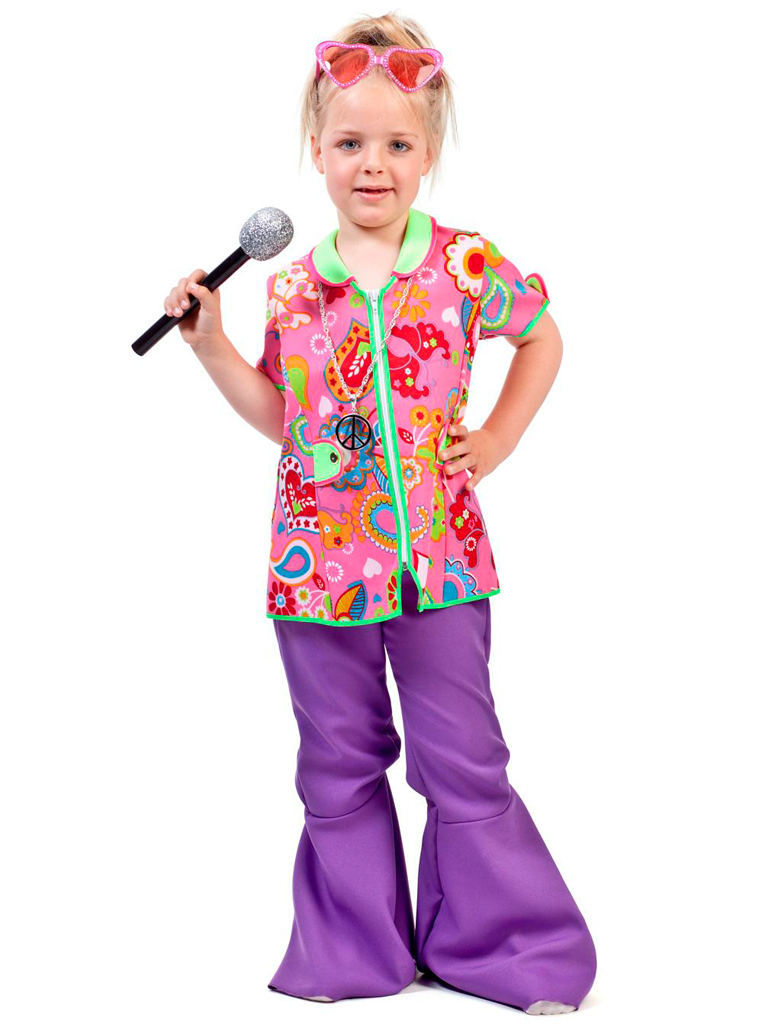 Diese Bluse erfüllt alle Wünsche eines kleinen Hippie Mädchens… bunt, schrill und blumig muss es sein… Deiner Reise zurück in die Zeit des Flower Powers steht also nichts mehr im Weg. Die Grundfarbe unserer Hippie Bluse ist rosa. Darauf ist sie über und über mit bunten Blumen, Herzen und sonstigen Motiven bedruckt. Kombiniert mit einer coolen Schlaghose, einer schrillen Brille und feschen Accessoires hast Du im Nu ein super süßes 70er Jahre Outfit. Die Bluse ist in der Front mit einem Reißverschluss zu schließen.