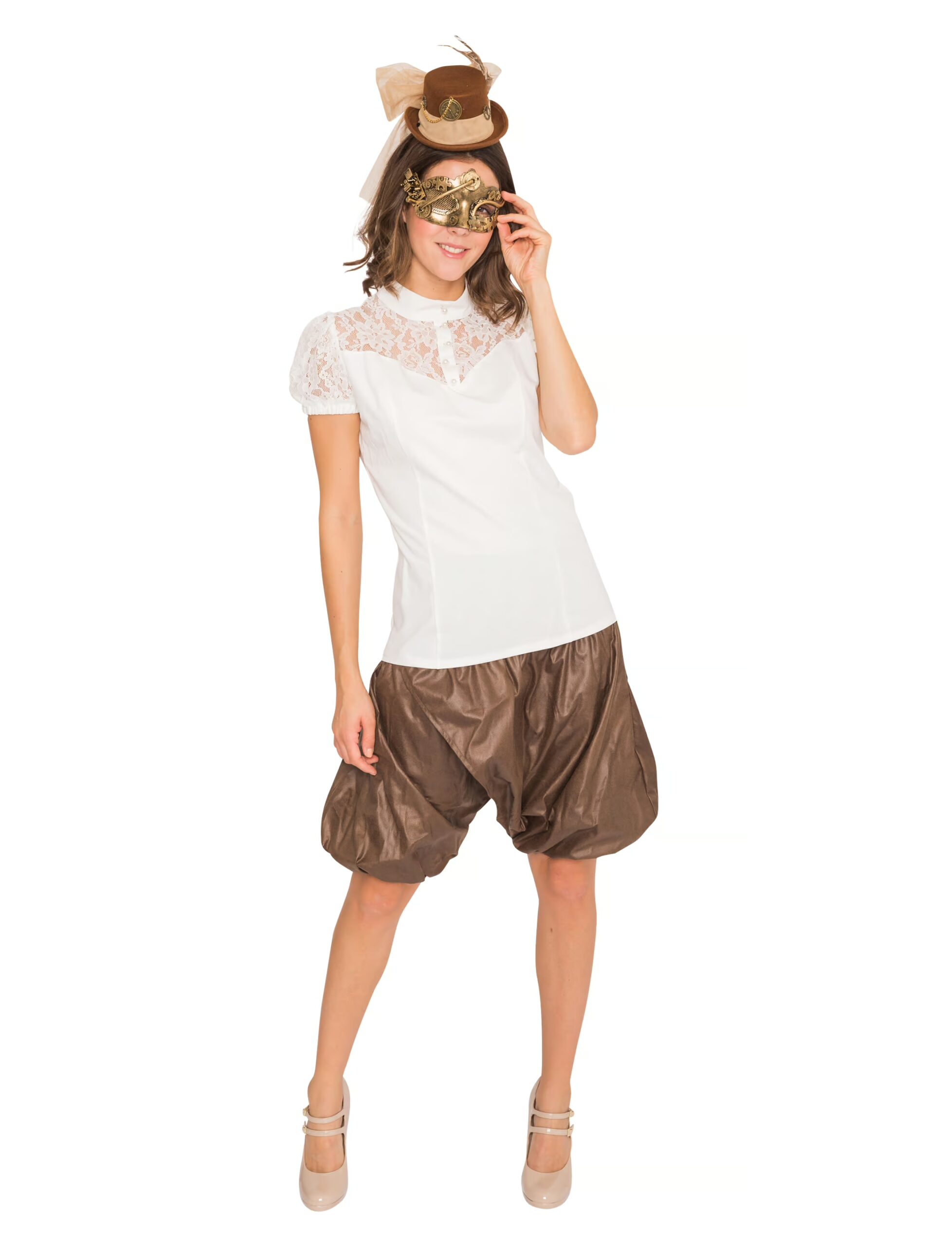 Ob zum Cowboy- oder Adeligen-Kostüm: Diese edle Bluse ist vielseitig einsetzbar! Sie besteht aus einem weißen Stoff, der oberhalb der Brust und an den Ärmeln von hübscher Spitze geziert wird. Die dekorative Knopfleiste in der Front und der weiße Kragen runden die hübsche Damen Bluse gekonnt ab. Durch einen Reißverschluss am Rücken lässt sie sich schließen. Auch im Alltag sieht dieses Kleidungsstück toll aus!