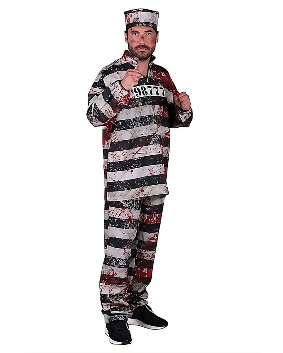 Blutbeflecktes Gefangenen Kostüm Schwarz-weißes Häftlings-Kostüm mit Blut Nachdem dich ein Mithäftling in den Arm gebissen hat, verwandelst du dich langsam aber sicher in einen Zombie. Unser blutbeflecktes Gefangenen Kostüm ist perfekt für alle, die lieber feiern als im Knast sind. Das Sträflingskostüm mit Blutflecken ist in Größe 48 und 52 verfügbar. Es enthält ein Oberteil, eine Sträflingshose und eine Mütze. Die Knastnummer ist mit Ziffern auf der Brust aufgedruckt. Lieferumfang: 1 x Blutbeflecktes Gefangenen Kostüm Inhalt: 1 x Oberteil, 1 x Hose, 1 x Mütze Farbe: Schwarz, Weiß, Rot Größe: S-48, L- 52 Material: 100% Polyester Blutiges Knast Kostüm für Karneval und Zombie Walk Häftlingsnummer und klassischer Streifen Look Der Artikel ist ein Kostüm, Nicht für Kinder unter 3 Jahren geeignet. Kann Kleinteile enthalten, die verschluckt werden können – Erstickungsgefahr. Von Feuer und offenen Flammen fernhalten