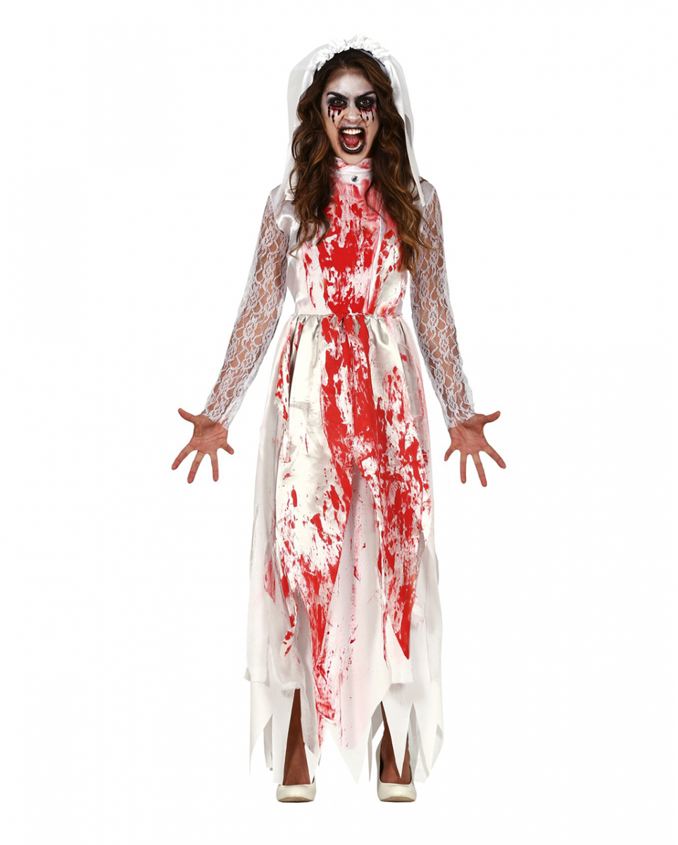 Blutiges Killerbraut Kostüm mit Schleier als Verkleidung für Halloween und Mottoparties Gehe als blutrünstige Mörderbraut zur Gruselnacht Party Das Blutiges Killerbraut Kostüm mit Schleier sorgt für Aufsehen an Halloween. Direkt vom Trauralter der Bluthochzeit auf die Gruselnacht Party. Du feierst deine Hochzeit mit einem blutigen Gemetzel. Die Machete ist dein Trauzeuge. Nur bei dem Bräutigam warst du dir nicht mehr sicher und deshalb bist du deinem Killer Instinkt gefolgt und hast ihn niedergemetzelt. Das Blutiges Killerbraut Kostüm mit Schleier zeigt dich im blutverschmierten Brautkleid und mit blutigem Schleier auf dem Kopf. Die weiße Spitze an den Ärmeln ist nur eines der lieblichen Brautkleid-Details. Auch die Spitzen am Saum zeugen davon, dass du dir Mühe gegeben hast, um das Kleid für den blutigsten Tag deines Lebens auszusuchen. Lieferumfang: 1 x Blutiges Killerbraut Kostüm mit Schleier Farbe: Weiß / Rot Größe: M, L, XL Material: 100% Polyester Lieferinhalt: 1x Kleid, 1x Schleier Abmessungen XS – S 36/38 M 38/40 L 42/44 XL 44/46 Brustumfang ca. 80-90 cm ca. 94-98 cm ca. 100-104 cm ca. 106-110 cm Taillenumfang ca. 73-77 cm ca. 78-82 cm ca. 85-89 cm ca. 91-95 cm Hüftumfang ca. 89-93 cm ca. 95-99 cm ca. 103-107 cm ca. 112-116 cm Achtung: Der Artikel ist ein Kostüm für Erwachsene und kein Spielzeug. Nicht für Kinder unter 3 Jahren geeignet. Kann Kleinteile enthalten, die verschluckt werden können. Es besteht dadurch Erstickungsgefahr. Vor Feuer und Flammen entfernt halten.
