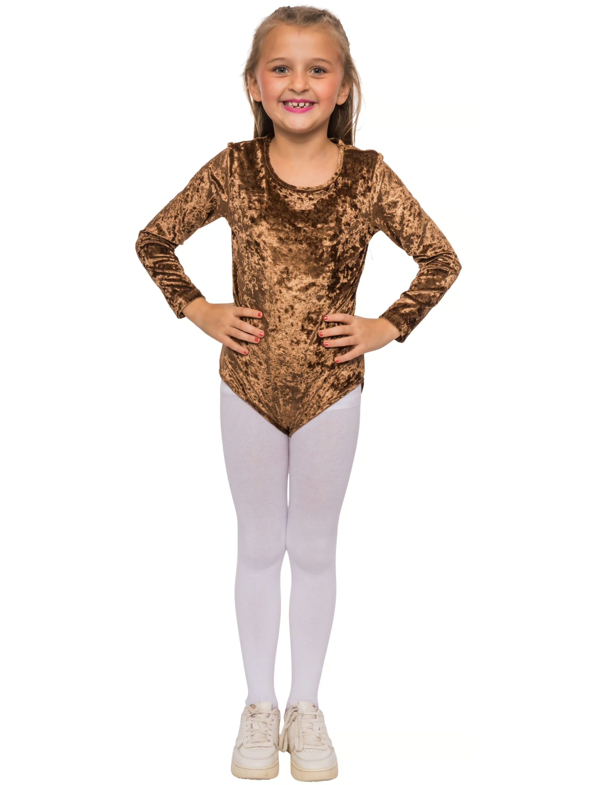 Body langarm Samt Kinder braun 140-152, ideal für Karneval & Fasching