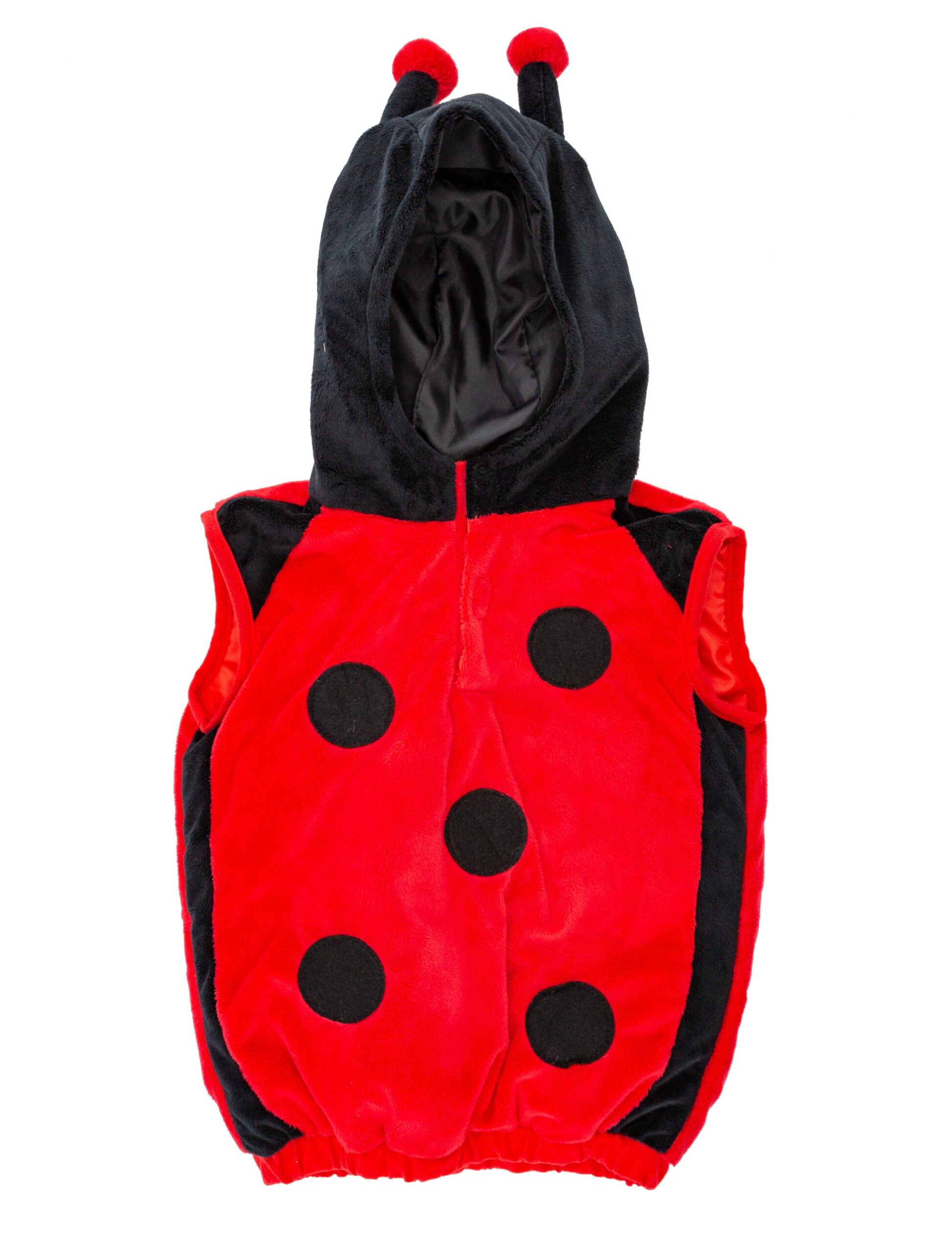 Dieser niedliche, ärmellose, rote Marienkäfer Body für Kinder mit den schwarzen Punkten und der schwarzen Kapuze mit Fühlern sowie dem praktischen Klettverschluss macht aus Deinem kleinen Racker ein entzückendes und liebenswertes Marienkäferkind. Der weiche und kuschelige Plüschbody kann von Mädchen und Jungen gleichermaßen getragen werden und ist nicht nur ein schickes und wärmendes Kinderkostüm zum Straßenfasching, sondern auch ein praktischer und die Fantasie des Kindes anregender Spielanzug.