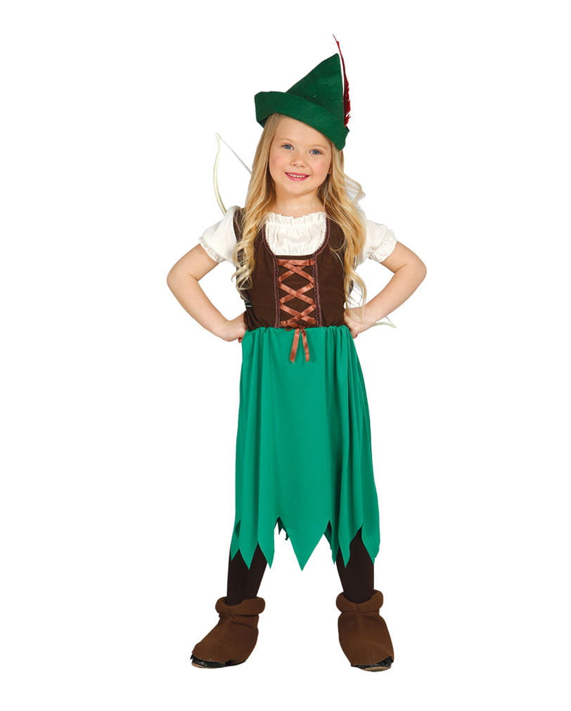 Süßes Bogenschützin Kostüm für Mädchen Mittelalterliches Kostüm für Fasching und Kindergeburtstag In dem Märchenkostüm für Mädchen kämpft deine Tochter mit Robin für Gerechtigkeit und unterstützt die Bedürftigen im Wald von Sherwood! Das Süße Bogenschützin Kostüm für Mädchen ist zweiteilig und besteht aus einem grünen Filzhut mit einer roten Feder sowie einem süßen Kleidchen. Das Kleid hat eine eingenähte Bluse mit Gummizügen an Ausschnitt und den kurzen Ärmeln. Über der Bluse ist das braune Oberteil mit einer Zierschnürung auf der Vorderseite angebracht. Die Schnürung ist seitlich mit einer Schmuckborte verziert. Der süße Rock des Kleides ist grün und unten am Saum spitz zugeschnitten. Süßes Märchenkostüm für Mädchen Lieferumfang: 1 x Süßes Bogenschützin Kostüm für Mädchen Inhalt: 1 x Mütze, 1 x Kleid Farbe: grün/braun/weiß/rot Größe: S, M, L Material: 100% Polyester Süßes Kleid für kleine Kämpferinnen! Größe: S (3-4 Jahre) M (5-6 Jahre) L (7-9 Jahre) Körpergröße ca. 95-100 cm ca. 110-115 cm ca. 127-132 cm Achtung: Der Artikel ist ein Kostüm und kein Spielzeug. Nicht für Kinder unter 3 Jahren geeignet. Kann Kleinteile enthalten, die verschluckt werden können – Erstickungsgefahr. Von Feuer und offenen Flammen fernhalten.