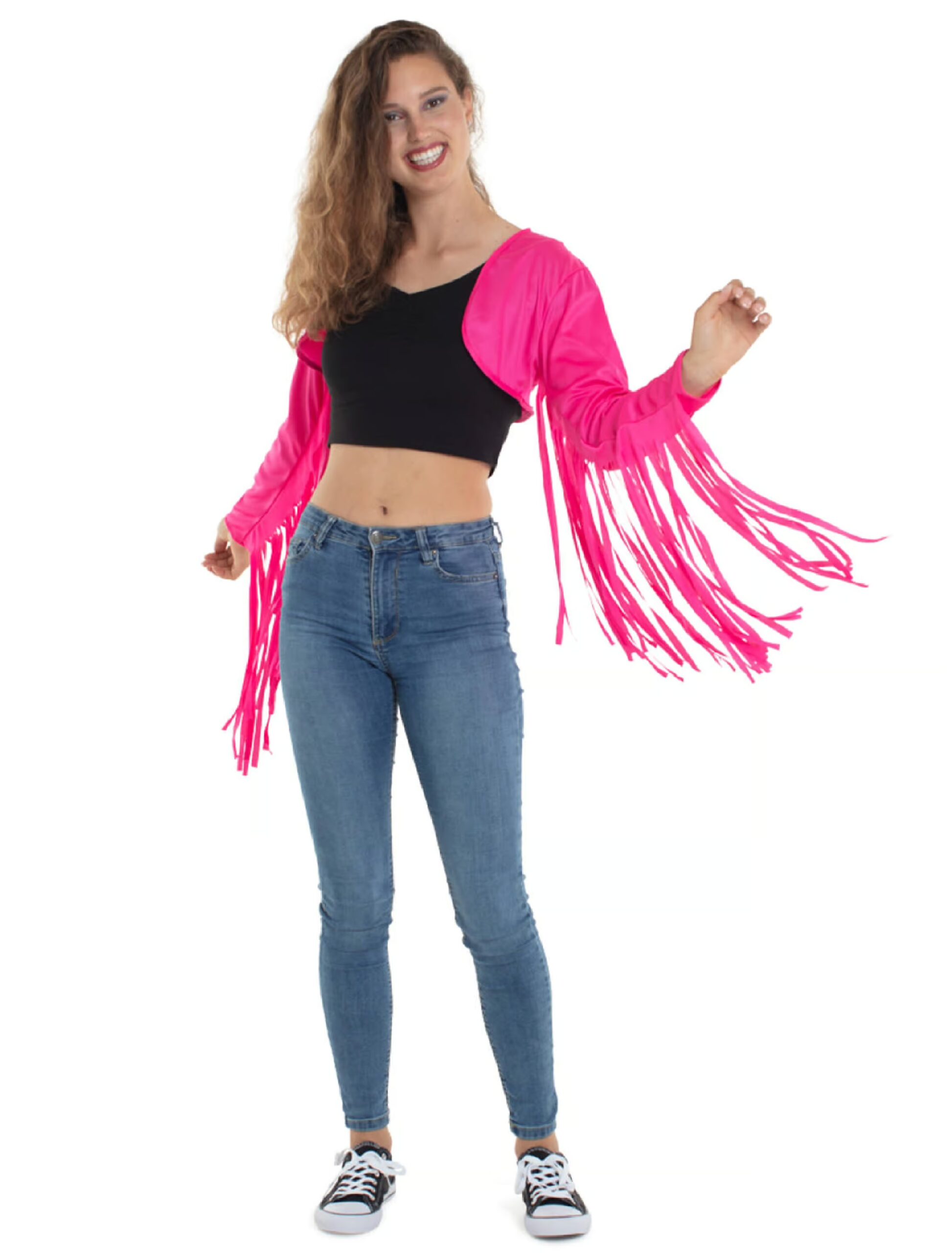 So sexy können nur die Spanier sein! Mit dem pinkfarbenen Bolero mit Fransen kannst Du als spanische Señorita die Männer um den Finger wickeln. Der atemberaubende Fransen-Look des kurzen Jäckchens steht jeder Dame gut zu Gesicht – auch auf Faschingsfeten und Karnevalspartys. Tanzen unbedingt erlaubt!