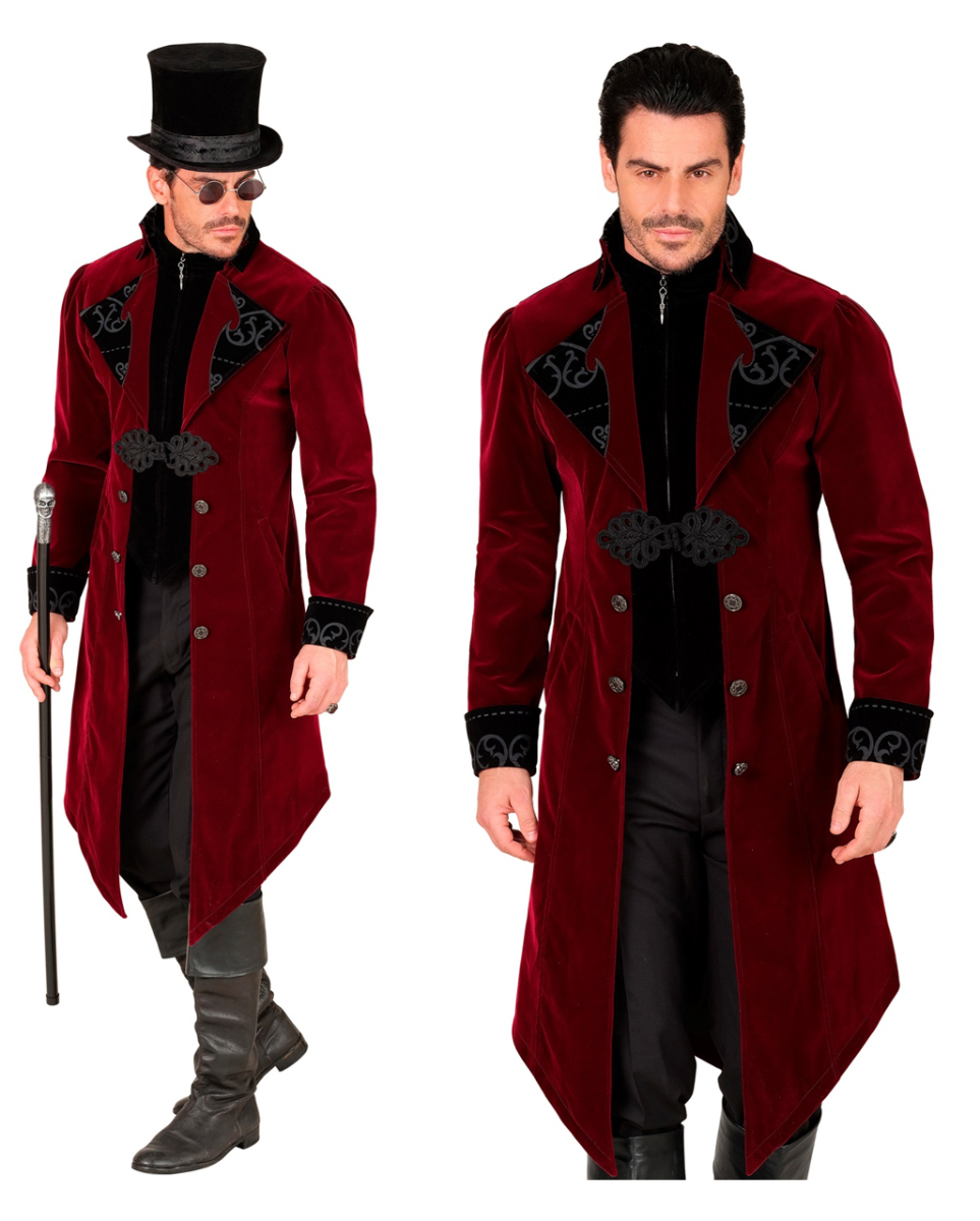 Bordeauxroter Mantel aus Samt als Kostümzubehör Verkleide dich zu Halloween, Fasching oder Mittelalterfest als eleganter Gentleman oder geheimnisvoller Graf Der bordeauxrote Mantel hüllt dich in edlen Samt, lässt dich zum geheimnisvollen Grafen, viktorianischen Magier oder düsteren Vampirfürsten werden. Die floralen Verzierungen, das tiefe Bordeauxrot, mit schwarzem Kragen, Reverse und Ärmelbund und die auffälligen Zierknöpfe machen aus diesem Mantel mehr als ein Kostüm: Es ist eine Rolle, in die du schlüpfst. Der Bordeauxrote Gothic Mantel als Kostüm besteht aus 100 % Polyester in hochwertiger Samtoptik und ist in den Größen S bis 2XL erhältlich. Der Mantel besticht durch elegante florale Muster auf der schwarzen Zierfläche von Brust, Revers, Ärmeln und Verschlussbereich. Acht dekorative Knöpfe, davon sechs auf der Frontseite, kaschieren geschickt den praktischen Reißverschluss. Lieferumfang: 1 x Bordeauxroter Mantel aus Samt als Kostümzubehör Farbe: Bordeauxrot, Schwarz Größe: S, M, L, XL, 2XL Material: 100% Polyester Der bordeauxrote Gothic Mantel aus Samt ist dafür ein hervorragendes Kostümzubehör und sorgt garantiert für Aufsehen Florale, elegante Muster auf der Brust, an den Ärmel, am Reverse und als Verschluss sorgen für Raffinesse 8 Zierknöpfe, davon 6 Stück auf der Frontseite, lenken davon ab, dass man den Gothic-Mantel praktischerweise mit Reißverschluss verschließen kann Unser bordeauxroter Samtmantel ist vielseitig einsetzbar und für viele Charaktere die richtige Bekleidung Schwarze Hose, Stiefel, Zylinder und Brille nicht inkl. Größe S 48 M 50 L 52 XL 54 2XL 56 3XL 58