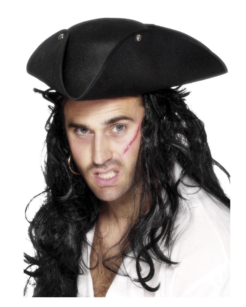 Dreispitz Piraten Hut Klassischer, schwarzer Seeräuberhut Mit der schwarzen Kopfbedeckung erhält dein Piratenkostüm den letzten Schliff und du kannst als Seeräuber verkleidet in den Karneval ziehen. Kostümiere dich mit unserem Piraten Hut als tollkühner Pirat. Der schwarze Dreispitz Piraten Hut ist aus stabilem, schwarzem Filz und ist nach schneller Montour der perfekte Dreispitz. Lieferumfang: 1 x Dreispitz Piraten Hut Farbe: Schwarz Größe 56/57 Material: Filz 100% Polyester Achtung: Der Artikel ist ein Kostümzubehör für Erwachsene und ist kein Spielzeug. Nicht für Kinder unter 3 Jahren geeignet. Enthält Kleinteile die verschluckt werden können. Es besteht dabei Erstickungsgefahr. Von Feuer fernhalten