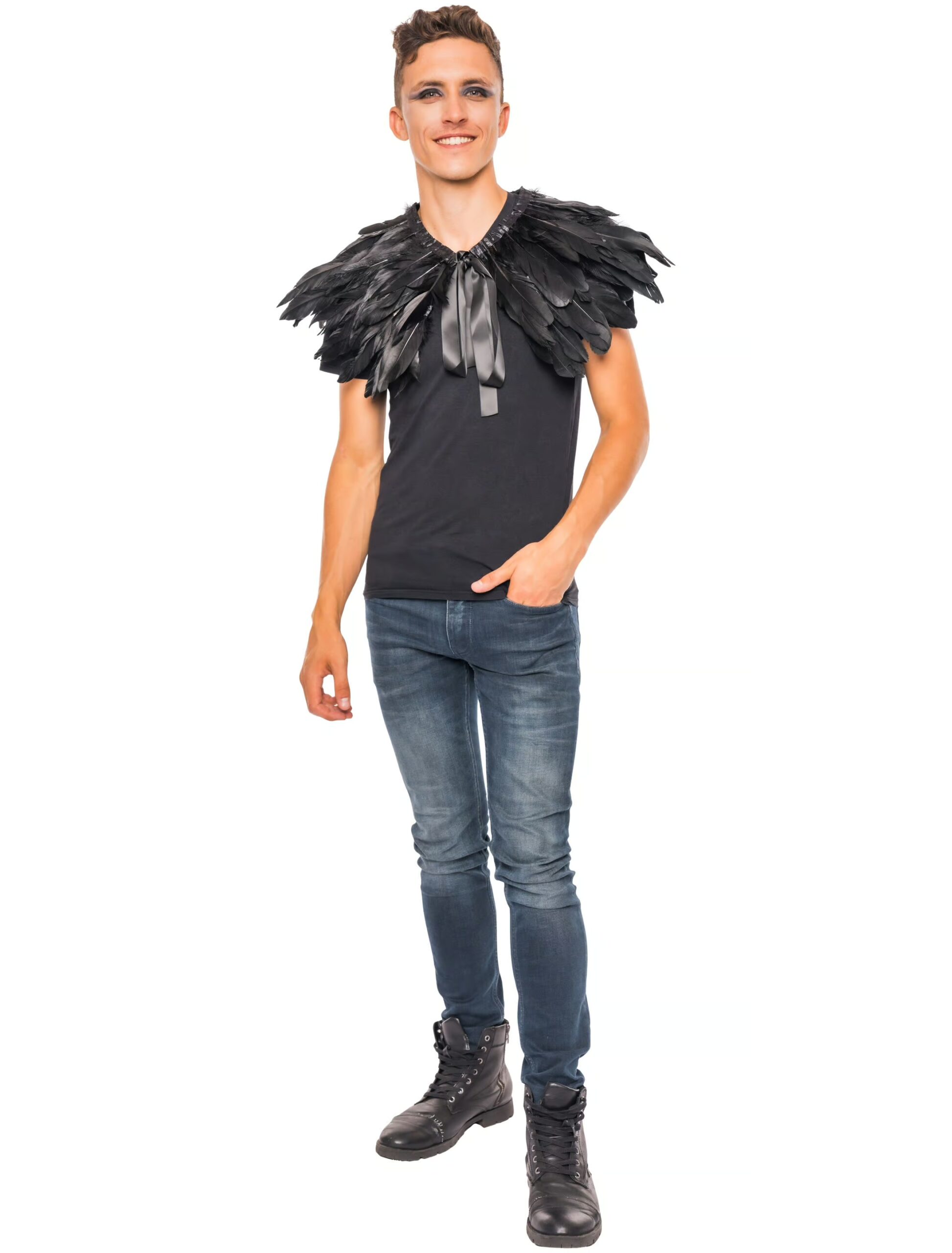 Cape mit Federn schwarz one size, ideal für Karneval & Fasching