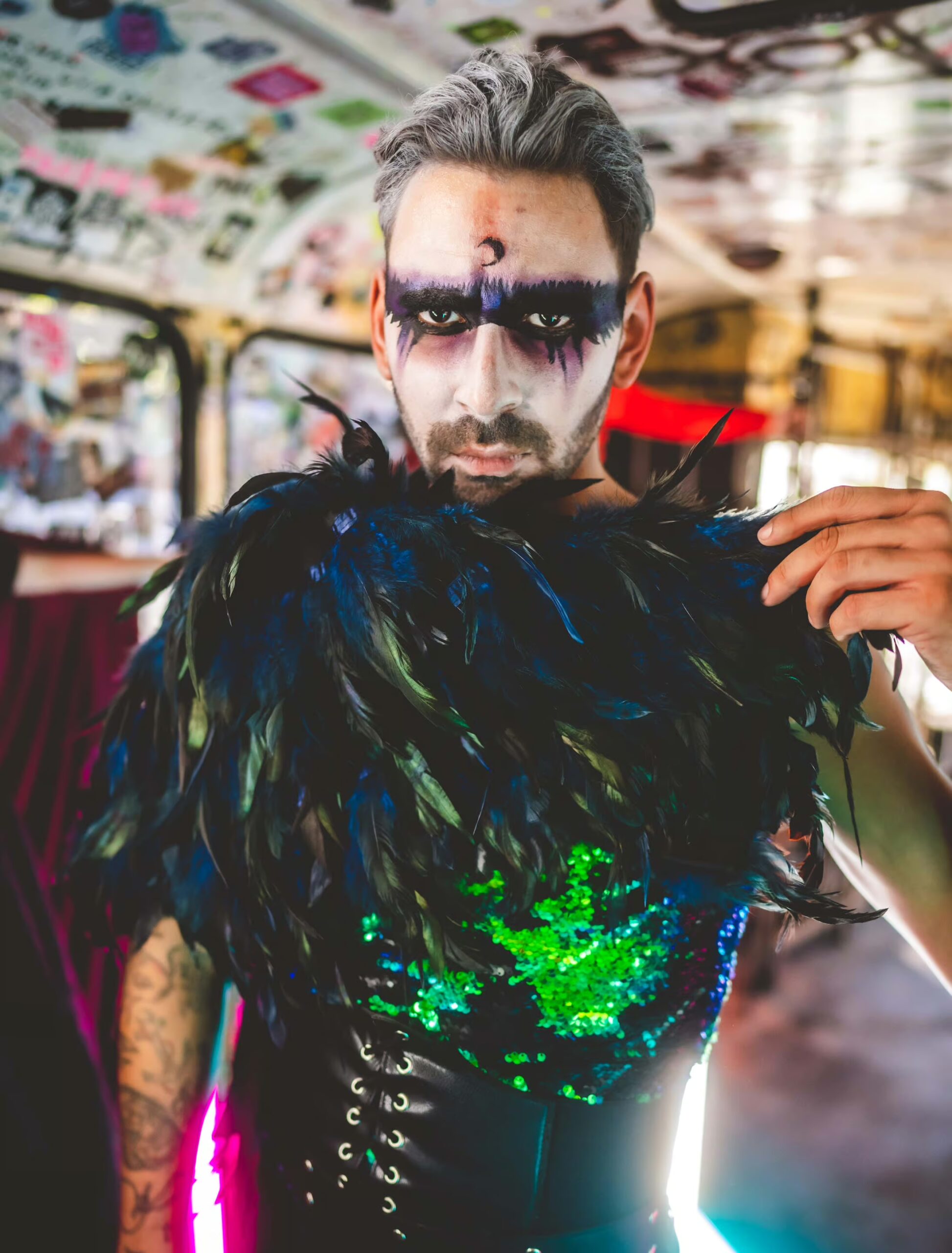 Cape Rabe mit Federn schwarz one size, ideal für Karneval & Fasching