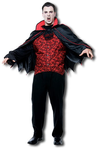 Count Kostüm Gr. M Werde mit dem Vampirkostüm zu Graf Dracula! Dieses Count Kostüm besteht aus einem schwarzen Umhang mit Fledermaussaum, schwarzem Jabot und rotem Stehkragen. Weiterhin gehört ein schwarzes Hemd mit Fake Weste zum Lieferumfang, deren Totenkopfdruck gruselig wirkt. Angebrachte Klettverschlüsse an Hemd und Cape erleichtern das An- und Ausziehen des Vampirkostüms. Material: 100 % PolyesterMaße: Schulterbreite: ca. 53 cm Hemdlänge: ca. 67 cm Brustumfang: ca. 110 cm Ärmellänge: ca. 76 cm Länge Umhang: ca. 70 cm
