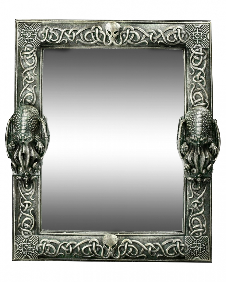 Cthulhu Wandspiegel im H.P. Lovecraft Look 48 cm Fantasy und Mystik Wohndeko für Sci-Fi-Fans Der Cthulhu Wandspiegel im H.P. Lovecraft Look ist ein besonderer Hingucker in deinem Wohnambiente. Sein massiver silberner Rahmen zeigt den Kopf der Fantasy-Kreatur Cthulhu sowie zahlreiche Schnörkel. Der Wandspiegel für Fantasy und Sci-Fi-Fans ist aus hochwertigem Kunststein und Glas gefertigt. Er ist von Hand bemalt und kommt in den Maßen 48 x 39 x 6 cm. Dieses Deko-Objekt ist auch fantastisch als Geschenkidee. Lieferumfang: 1 x Cthulhu Wandspiegel im H.P. Lovecraft Look 48cm Farbe: Grau, Silber Größe: 48 x 39 x 6 cm Gewicht: 2,9 kg Material: Polyresin (Kunststein), Glas Der Artikel ist ein Kostümzubehör für Erwachsene und kein Spielzeug. Nicht für Kinder unter 3 Jahren geeignet. Kann Kleinteile enthalten, die verschluckt werden können – Erstickungsgefahr. Von Feuer und offenen Flammen fernhalten.