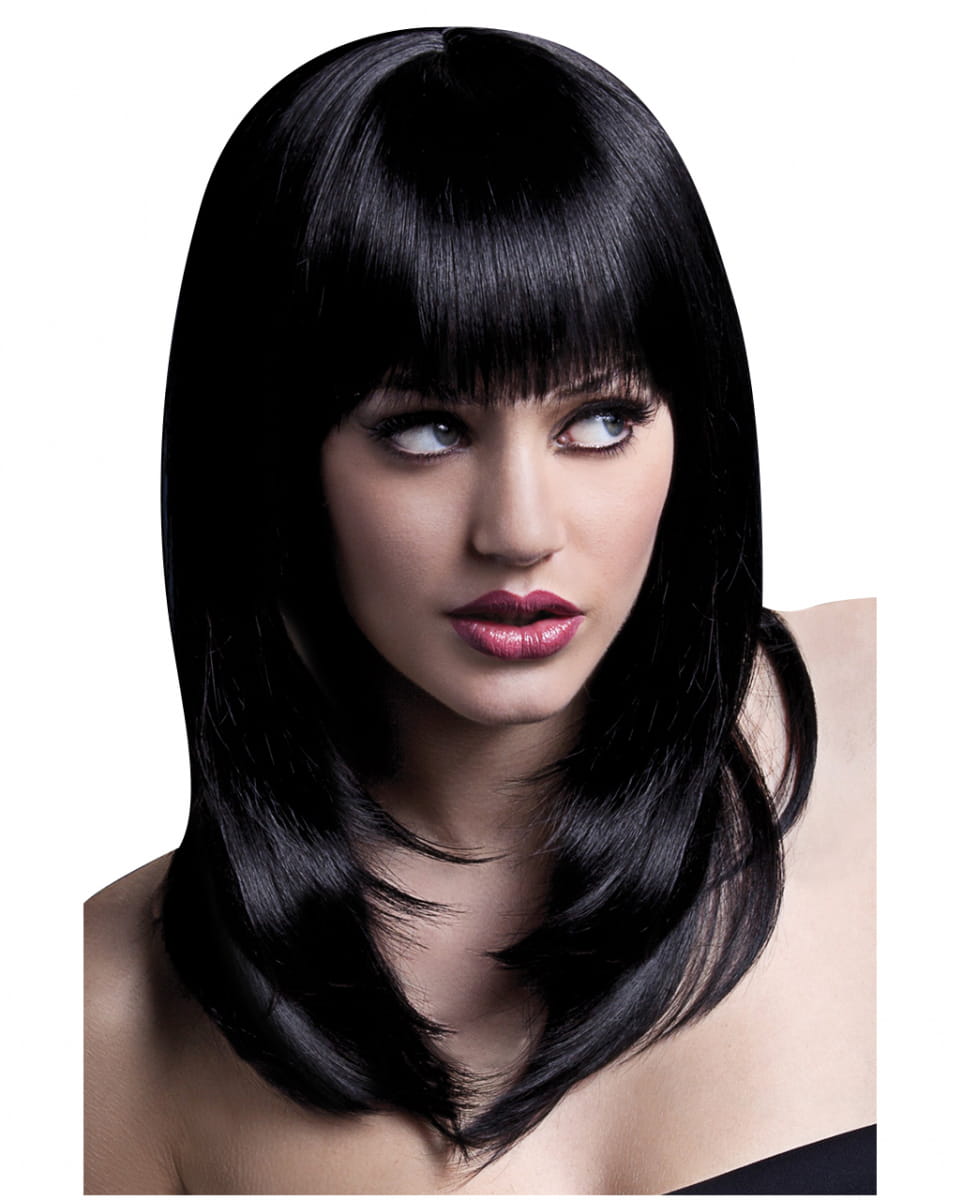 Mittellange Damenperücke Tanja mit Pony Schwarz Hochwertige Kunsthaar Perücke für Halloween, Karneval, Travestie und Cosplay Tauche ein in die Welt der Verwandlung mit der mittellangen Damenperücke Tanja mit Pony in Schwarz! Mit roten Lippen und der verführerischen Frisur wirst du zum Star, sei es auf der Bühne oder im Alltag. Die Mittellange Damenperücke Tanja mit Pony Schwarz besteht aus 100% Kunsthaar und hat eine Haarlänge von ca. 46 cm. Sie verfügt über einen geraden Pony und ist hitzebeständig bis zu 120°C, sodass du sie nach deinen Wünschen stylen kannst. Die voll einstellbare Perückenkappe sorgt für sicheren Halt, während das hautfarbene Unterfutter am Scheitel für ein realistisches Aussehen sorgt. Lieferumfang: 1 x Mittellange Damenperücke Tanja mit Pony Schwarz Farbe: Schwarz Material: 100% Kunsthaar Haarlänge: ca. 46 cm gerader Pony Weitere Informationen zu der Damenperücke: Für Glätteeisen und Lockenstab geeignet Hitzebeständig bis zu 120°C voll einstellbare Perückenkappe für sicheren Halt leicht und komfortabel am Scheitel hautfarben unterlegt realistisches Aussehen Synthetische Perücke in Profi Qualität