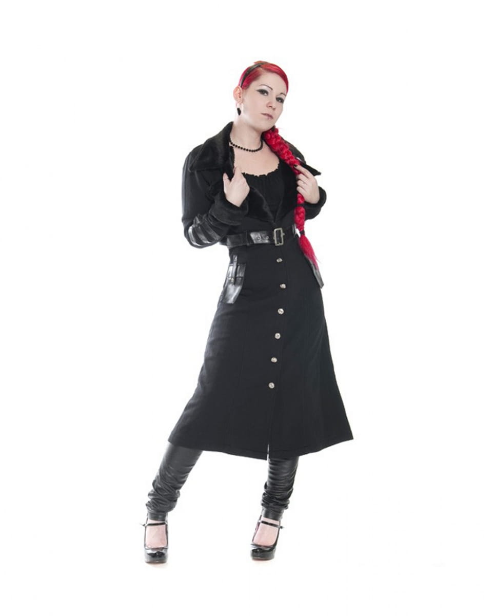 Schwarzer Mantel mit Kunstfellkragen und Totenkopf-Knöpfen Hochwertiger Damenmantel mit Kunstleder Akzenten und Fake-Fur Applikation Gerade Gothic-Ladys achten bei ihrem Styling auf jedes Detail. Nichts wird dem Zufall überlassen, denn ein düsterer Auftritt ist auch bei der Alltagsmode von Bedeutung. Ein schwarzer Mantel mit Kunstfellkragen und Totenkopf Knöpfen rundet deinen Gothic Style perfekt ab und lässt dich einfach umwerfend aussehen. Der schwarze Damenmantel im Gothic-Look ist eine alltagstaugliche Gothic-Mode für Frauen, die deinen Style unterstreicht. In der Lieferung ist ein schwarzer Mantel mit Kunstfellkragen und Totenkopf Knöpfen. Der mondäne Fake-Fur Kragen gibt diesem Mode-Accessoire etwas sehr stilvolles, was durch die am Ärmel befindlichen Kunstleder Akzente und den edlen Gürtel perfekt abgerundet wird. Der schöne Gothic-Mantel für Frauen ist in den Größen S-XL verfügbar und eine hinreißende Alltagsmode für kühle Tage. Lieferumfang: 1x Schwarzer Mantel mit Kunstfellkragen und Totenkopf Knöpfen Inhalt: 1x Gehrock Farbe: Schwarz Größe: S, M, L, XL Material: 100% Polyester Der Artikel ist ein Modeartikel für Erwachsene und kein Spielzeug. Nicht für Kinder unter 3 Jahren geeignet. Kann Kleinteile enthalten, die verschluckt werden können – Erstickungsgefahr. Von Feuer und offenen Flammen fernhalten.