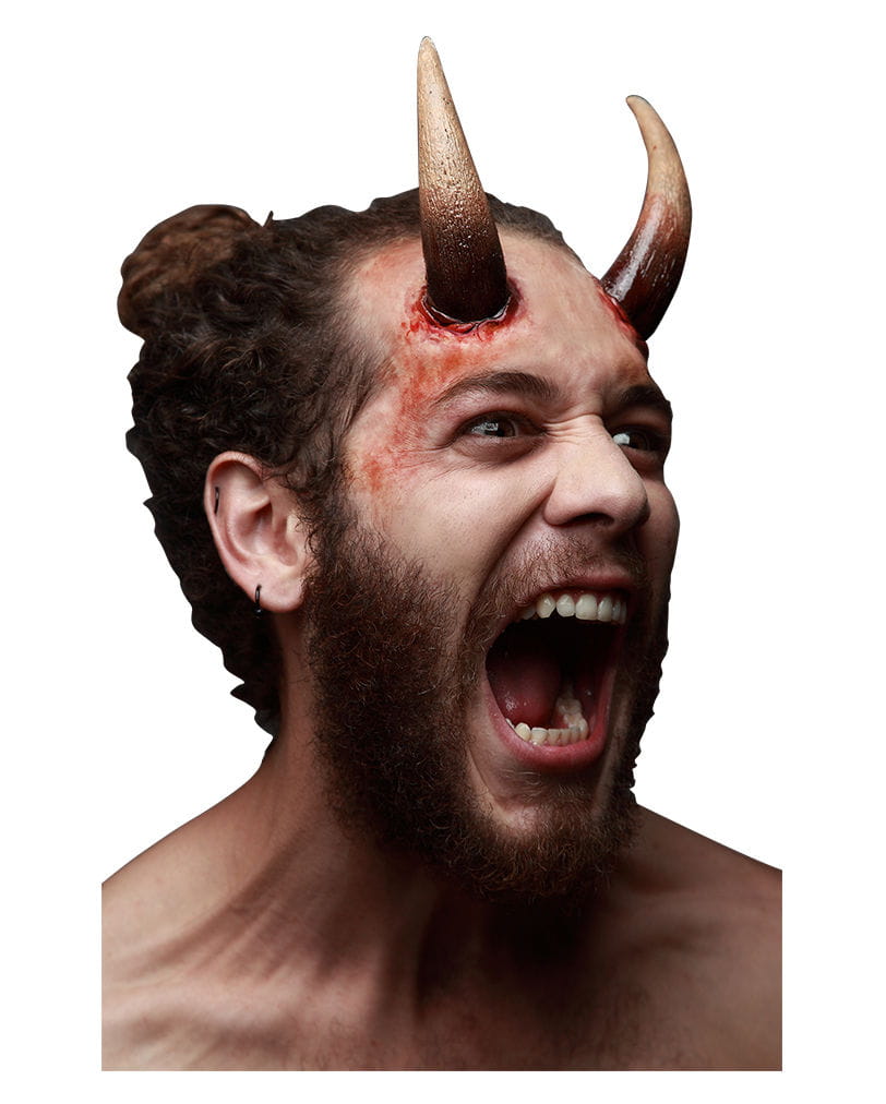 Große Dark Devil Latexhörner für Fasching und Halloween Dramatische Hörner als Latexapplikation für dein Spezial Make-up Effekt Mit den großen, eindrucksvollen Dark Devil Hörnern aus hochwertigem Latex besitzt du die Möglichkeit, dich schnell Fabelwesen zu verwandeln. Ob du nun einen Dämon, ein Monster oder einen Teufel aus dem Märchenbuch darstellen willst, Latexhörner als Spezial Make-up Zubehör, gehören auf jeden Fall dazu! Die beige-braunen, mit natürlich wirkender Riffelung versehenen Dark Devil Hörner Applikation lässt sich für Liverollenspiel, Halloween, Fasching und Karneval gleichermaßen einsetzten. Die bereits vorgefärbten Dark Devil Hörner Applikation werden ganz einfach mit Mastix Hautkleber oder Latexmilch, auf die zuvor mit Alkohol gereinigte Haut aufgeklebt. Nach dem Befestigen der Latexapplikation, wird diese mit normalem Make-up oder Theaterschminke, dem Hautton der Umgebung angepasst. Nach Gebrauch der Latexapplikation, kann diese ganz einfach wieder von der Haut abgezogen werden. Etwaige Klebereste von Mastix und Latexmilch lassen sich mit Make-up Remover, Nagelackentferner oder mit Seife und warmen Wasser schnell entfernen. Lieferumfang: 1 x Dark Devil Latexhörner Applikation Inhalt: 2 Stück Farbe: Beige/Braun/Rot Größe: jeweils ca. 11 cm Lang Material: Latex Bereits vorgefärbt Mehrfach verwendbar Mastix Hautkleber und Filmblut nicht inkl. Warnhinweis: Das Produkt enthält Latex. Ein Test auf allergische Hautreaktion in der Armbeuge wird empfohlen, da Latex bei sensibler Haut zu temporärer Rötung führen kann. Sollte sich beim Test in der Armbeuge eine heftige Rötung zeigen, raten wir von der Benutzung der Latexapplikation ab.