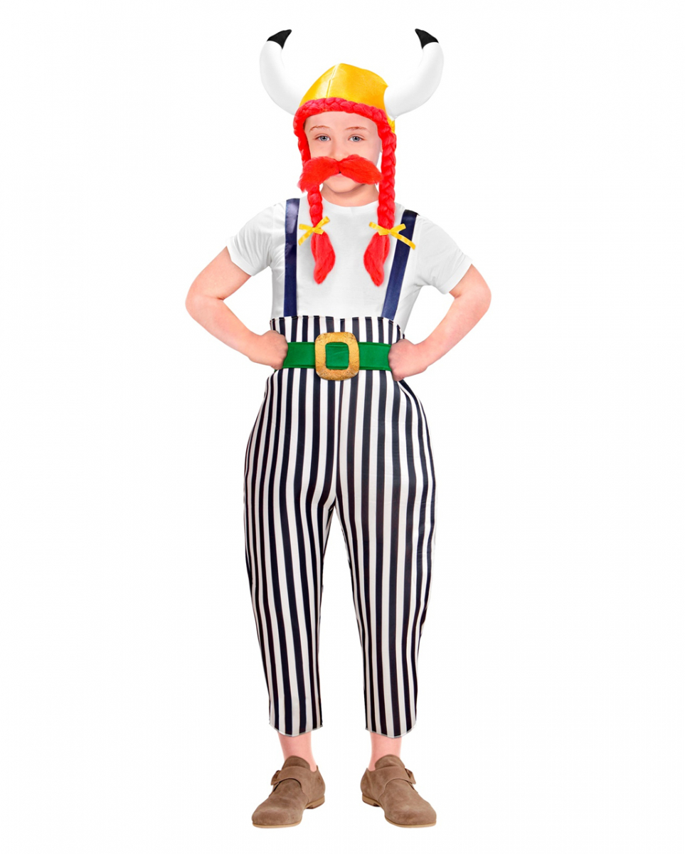 Dicker Gallier als witziges Kinderkostüm Kinderkostüm des starken Comic-Helden Der legendäre Gallier und sein kleiner, kräftiger Begleiter sind durch dick und dünn zusammen. Sie verzehren gern Schweinefleisch und trinken dazu am liebsten Bier. Ihre Lieblingsfreizeitbeschäftigung ist – manchmal mithilfe diverser Zaubermittel – das Verprügeln von gemeinen Römern. Du kannst in unserem Gallier Kinderkostüm gegen alle römischen Legionäre auf der Halloween-Party einen heldenhaften Widerstand leisten. Das witzige Kinderkostüm eines starken, gallischen Helden besteht aus einer weiß blau gestreiften Hose mit grünen Gürtel, einem gelben Gallierhelm. Der Helm ist mit weißen Hörnern und langen roten Zöpfen ausgerüstet. Zusätzlich beinhaltet das Gallier-Kinderkostüm einen komischen, roten Schnauzbart. Das T-Shirt gehört nicht dem Kostümset. Lieferumfang: 1x Gallier Kinderkostüm Inhalt: 1x Hose, 1x Gürtel,1x Helm mit Zöpfen, 1x Bart (T-Shirt ist nicht im Lieferumfang enthalten) Größe: S, M, L Material: 100% Polyester Witziges Kelten Kostüm für Kinder Größe S 128 / 5-7 Jahre M 140 / 8-10 Jahre L 158 / 11-13 Jahre