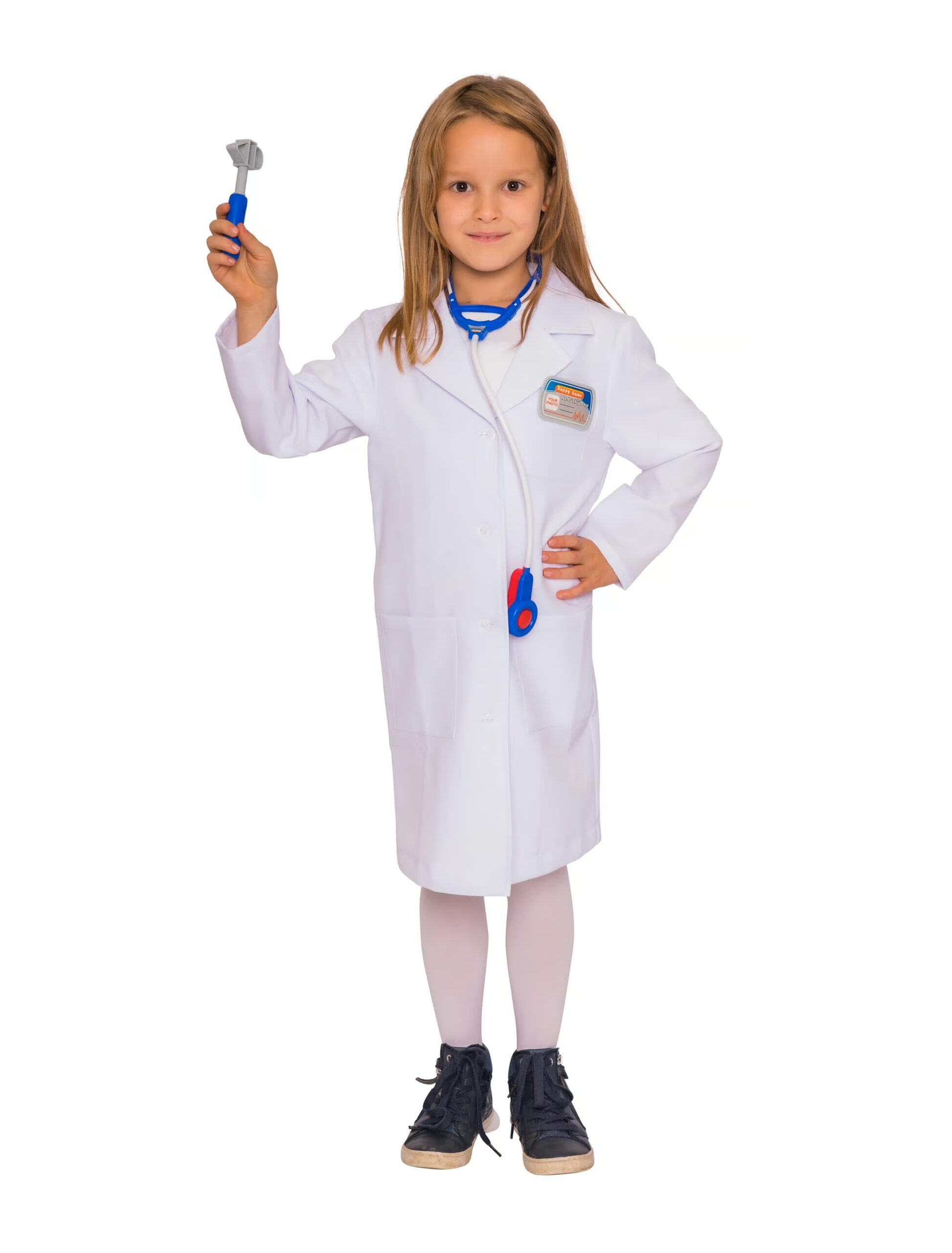 Mit diesem niedlichen Doktor Kittel wirst Du Zeuge, wie sich Dein Kind im Handumdrehen in einen erstaunlich, echt wirkenden, kleinen Arzt oder in eine bezaubernde kleine Ärztin verwandelt, die ihre kranken Puppen und Teddys mit Pflastern und Medizin wieder gesund macht. Der, übers Knie reichende, langärmlige, weiße Arztkittel besteht aus Polyester und wird mit vier Knöpfen geschlossen. Ein Stethoskop, ein Namensschild und eventuell eine Doktorenbrille aus unserem Shop machen die Illusion perfekt. Dieses entzückende Doktorkostüm macht Dein Kind nicht nur im Karneval, sondern auch beim täglichen Spiel mit den Puppen und Teddys, glücklich.