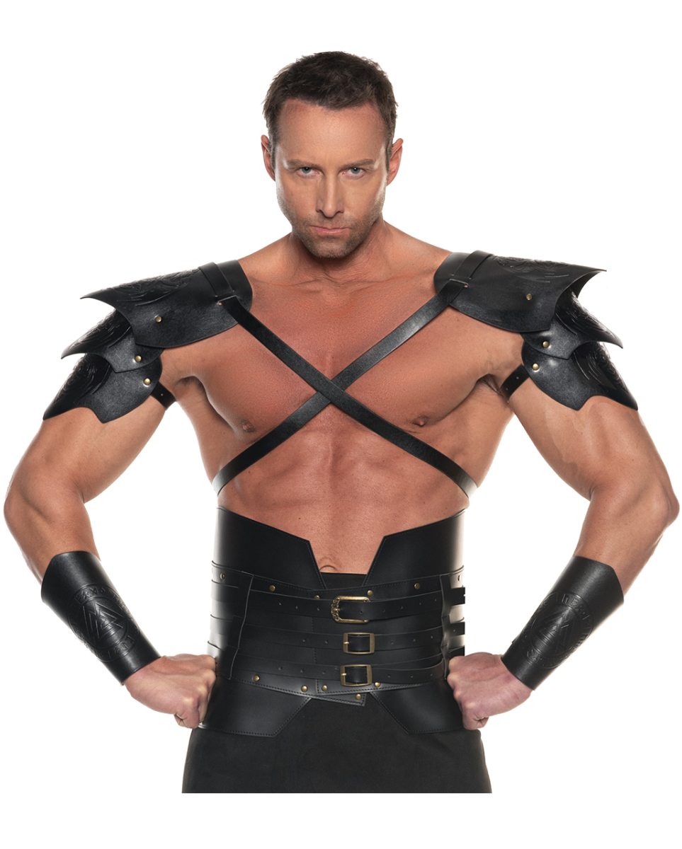 Drachen Krieger Gladiatoren Schulterpanzer Schwarz 2er Set Gladiatoren Kostümaccessoire für die Schulter Tauche ein, in die Welt der blutigen Gladiatorenkämpfe und trage zu deinem Kostüm die Drachen Krieger Gladiatoren Schulterpanzer in Schwarz im 2er Set. Mit dem geprägten Drachenmuster ziehst du in der Arena alle Blicke auf dich. Du erhältst schwarze Schulterpanzer für Gladiatoren Kostüme. Das Krieger Kostümzubehör ist schwarz und besteht aus zwei robusten Kunstleder-Schulterklappen. Lieferumfang: 1 x Drachen Krieger Gladiatoren Schulterpanzer Schwarz 2er Set Inhalt: 2 Stück Farbe: Schwarz, Gold Größe: One Size Material: Kunstleder Schwarze Kunstleder Schulterpanzer Antikes Gladiatoren Kostümzubehör Mit Metallschnallen und goldenen Nieten Drachenmuster auf allen Klappen