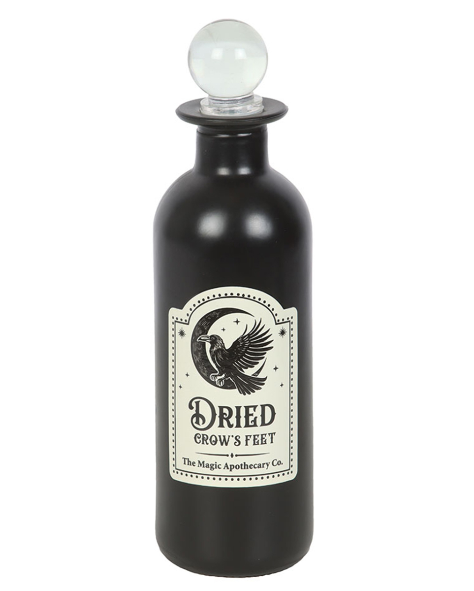 ",Dried Crow´s Feet", Zaubertrankflasche aus Glas 19,5cm Vintage Hexen Flasche aus Glas als Tischdekoration Die Zauberflasche mit Krähenmotiv wirkt wie aus einer anderen Zeit. Dekoriere mit der ",Dried Crow’s Feet", Zaubertrankflasche aus Glas und sorge für mystische Stimmung in deiner Hexenküche! Die magische Giftflasche als Halloween Homeware besteht aus hochwertigem Glas und ist in mystischem Schwarz gehalten. Das beige-schwarze Apotheker-Label ist im Vintage Look designt und sorgt für den altertümlichen Touch. Lieferumfang: 1 x ",Dried Crow´s Feet", Hexentrankflasche 19,5cm Farbe: Schwarz, Beige, Transparent Größe: ca. 19,5 x 5 x 5 cm Material: Glas Verleihe deiner Hexen Einrichtung ein mystisches Flair Schwarze Giftflasche mit Zaubergewürz Label als Motiv ",Getrocknete Krähenfüße", Dried Crows Feet als Label Aufdruck Transparente Glaskugel als Verschluss Als nostalgische Halloween Deko Passend zu anderen Artikeln unserer Mystic Raven Kollektion