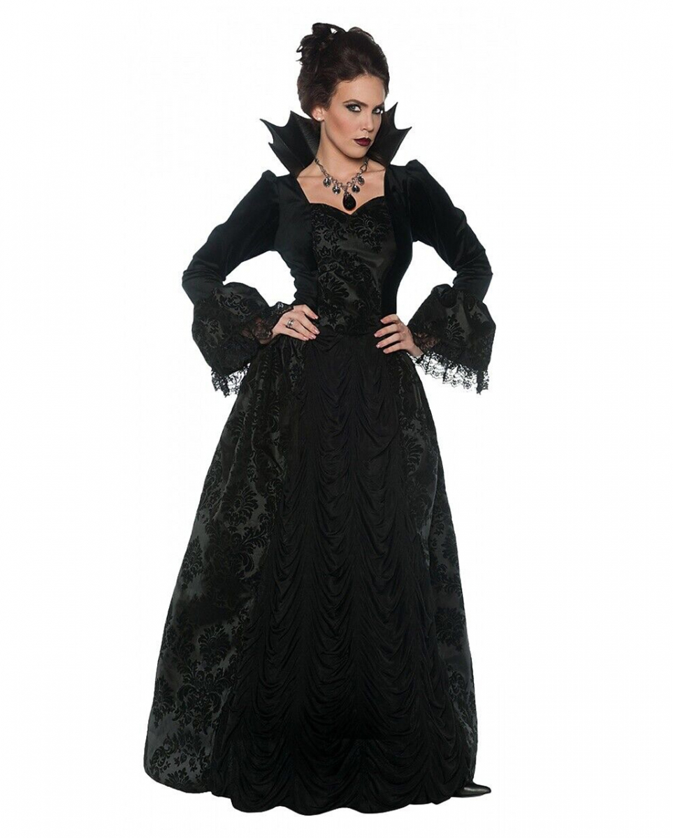 Evil Steampunk Queen Kostüm Schwarzes Halloween Ballkleid mit Stehkragen Für Fans des viktorianischen Zeitalters ist dieses Evil Steampunk Queen Kostüm ein absolutes Muss. Das Kostümkleid mit Spitze und Rüschen ist in Schwarz gehalten und verleiht dir einen düster-romantischen Look. Vielleicht findest du in diesem Outfit ja deinen Fürsten der Finsternis? Das Evil Steampunk Queen Kostüm ist ein schwarzes Halloween Kostüm mit Stehkragen, Spitzen-Details und Rüschen. Es handelt sich um ein hochwertig verarbeitetes, weiches Kostümkleid, mit welchem du in die Rolle einer Königin schlüpfen kannst. Die Verkleidung ist in Größe S(34/36) bis XL(44/46) erhältlich. Mit einer Halloween Perücke und einem düsteren Make-up wird der Look komplett! Lieferumfang: 1 x Evil Steampunk Queen Kostüm Inhalt: 1 x Kleid mit Rüschen, Spitzen und Stehkragen Farbe: Schwarz Größe: S, M, L, XL Material: 100% Polyester Elegantes Halloween Kostüm in Gothic Style Bodenlanges, viktorianisches Ballkleid mit Stehkragen Größen: S (34-36) M (38-40) L (42-44) XL (44-46) Brustumfang: ca. 89 – 93 cm ca. 93 – 98 cm ca. 100 – 103 cm ca. 109 -112 cm Taillenumfang: ca. 65,5 – 68 cm ca. 70,5 – 73 cm ca. 76,5 – 84 cm ca. 86 – 88 cm Hüftumfang: ca. 92 – 95 cm ca. 96 – 99 cm ca. 102 – 109 cm ca. 113 – 115 cm Der Artikel ist ein Kostüm für Erwachsene und kein Spielzeug. Nicht für Kinder unter 3 Jahren geeignet. Kann Kleinteile enthalten, die verschluckt werden können – Erstickungsgefahr. Von Feuer und offenen Flammen fernhalten.