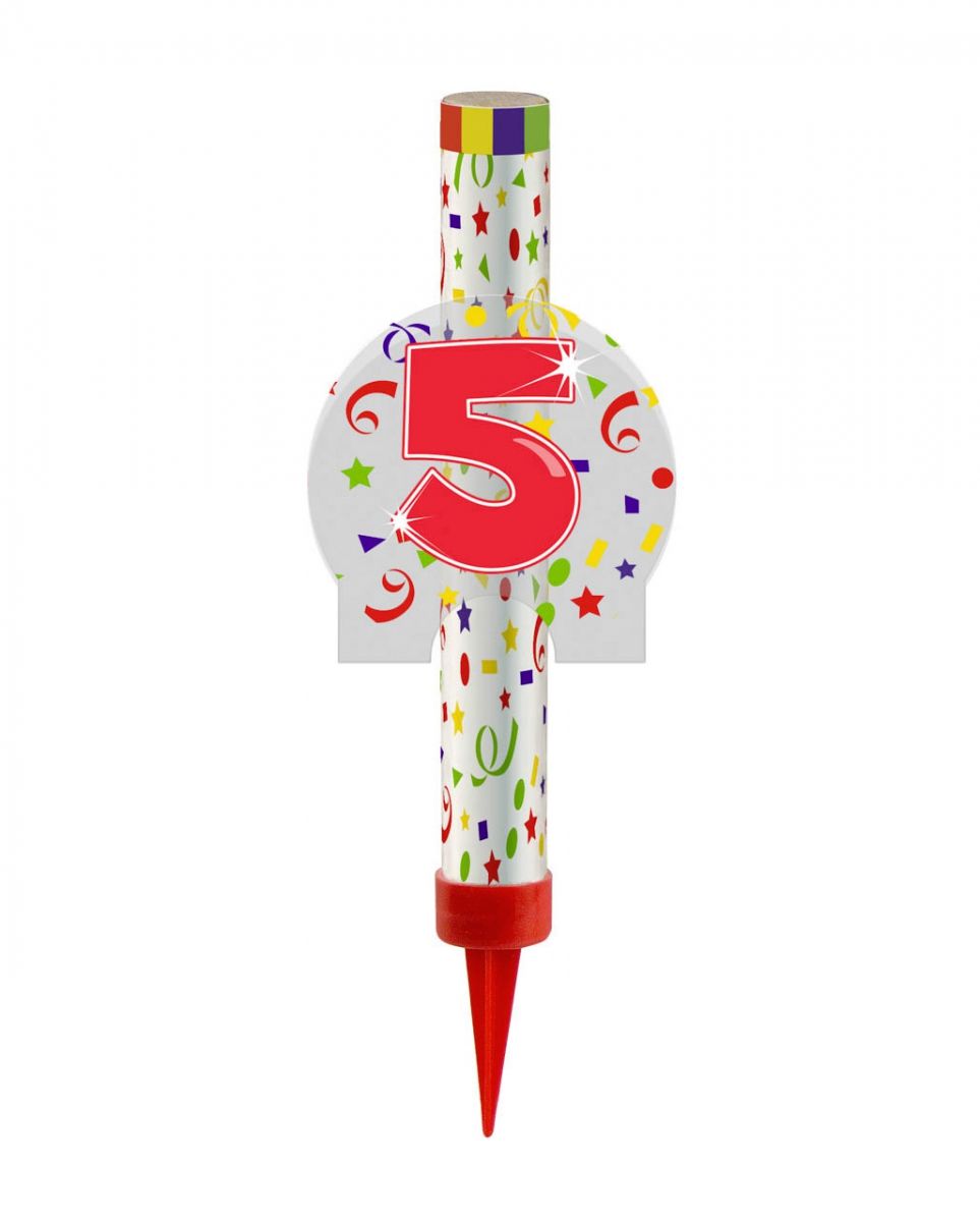 Tischfeuerwerk Eisfontäne Zahl 5 Tolle Party-Fontäne als Dekoration für Geburtstage und Jubiläen Das Tischfeuerwerk Eisfontäne Zahl 5 schmückt sämtliche Buffets, Geburtstagskuchen und Hochzeitstorten. Als schön anzusehende und ganzjährig verwendbare Dekoration eignet sich die Eisfontäne hervorragend. Verzaubere deine Gäste mit unserem Tischfeuerwerk Eisfontäne Zahl fünf! Das Tischfeuerwerk Eisfontäne Zahl 5 wird mit der Plastikspitze, die zugleich als Schutzhülse dient, in nicht brennbare Oberflächen wie Kuchen, Torten, Sand etc. gesteckt und mittels mitgelieferter Lunte angezündet. Daraufhin sprühen Funken ca. 12 cm für ca. 45 Sekunden in die Höhe und verbreiten echtes Silvester-Feeling in deiner Wohnung. Das Geburstagsfeuerwerk eignet sich sowohl für den Innen-, als auch den Außengebrauch. Lieferumfang: 1x Tischfeuerwerk Eisfontäne Zahl 5 Inhalt: 1 Eisfontäne, 1 Lunte Farbe: weiß/rot Größe: ca. 15cm Gesamtlänge, ca. 7cm Breite Material: Pappe/Kunststoff Abgabe an Personen unter 12 Jahren verboten! Abgabe/Aufbewahrung nur in ungeöffneter Originalverpackung erlaubt. Gefahr durch Feuer oder Splitter, Spreng- und Wurfstücke. Von Hitze/Funken/offener Flamme/heißen Oberflächen fernhalten. Nicht rauchen.