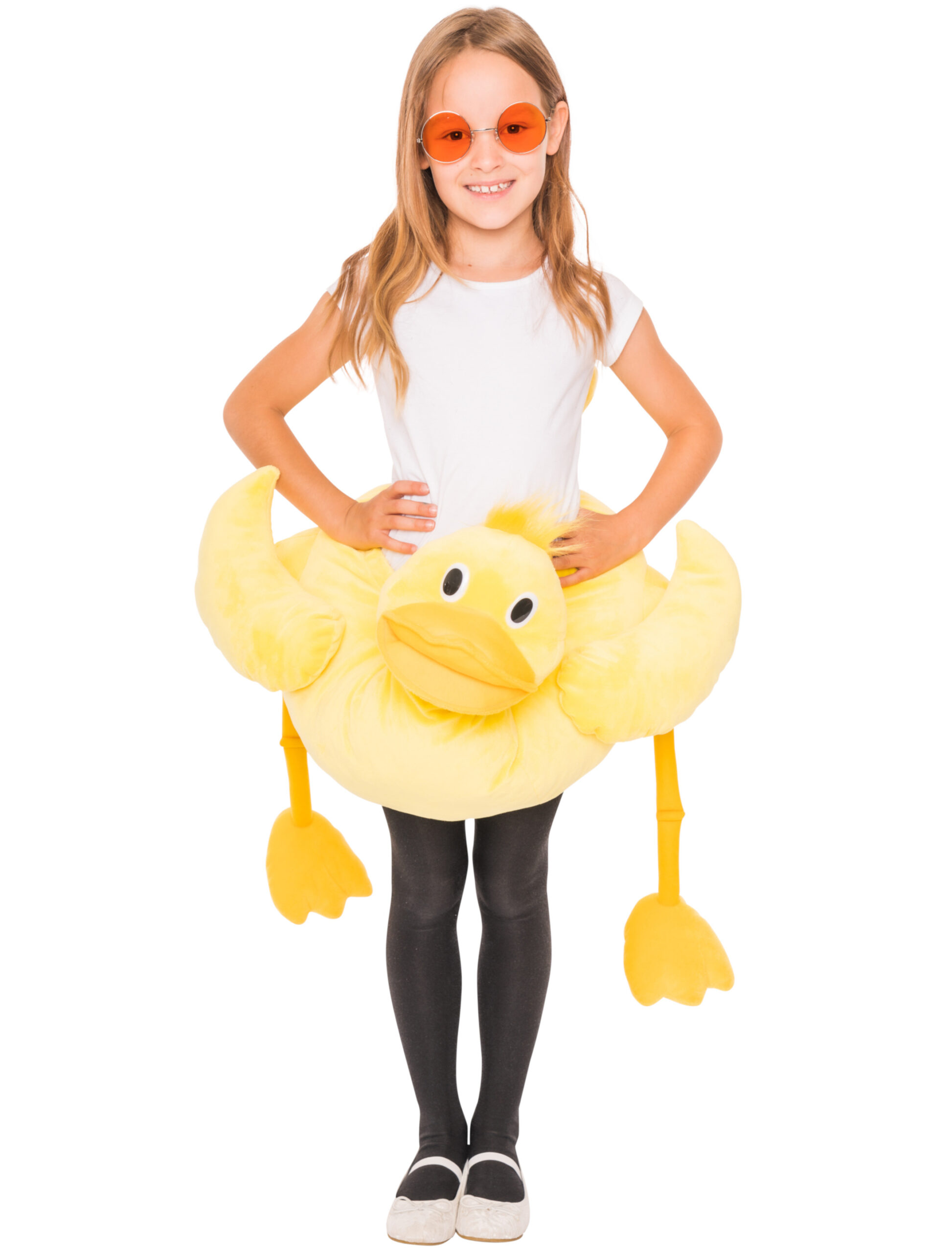 Wirklich süß ist unsere gelbe Ente zum Umhängen für Kinder, die aus Deinem Kind einen niedlichen und sehenswerten Hingucker macht, der nicht nur beim Ententanz eine gute Figur macht, sondern den Erwachsenen ein Lächeln ins Gesicht zaubert. Das entzückende Kostümteil mit dem freundlichen Entenkopf samt Entenschnabel und Kulleraugen, den baumelnden Entenfüßen, den kleinen Flügelchen und dem rückseitigen Bürzel ist mit längenverstellbaren Gurten ausgestattet. Die Ente zum Umhängen ist nicht nur eine originelle Kostümidee zum Fasching, Karneval und auf Mottopartys, sondern auch eine aparte und schnelle Verkleidung für Kindergeburtstage und Rollenspiele. Dein Kind wird die Ente lieben!