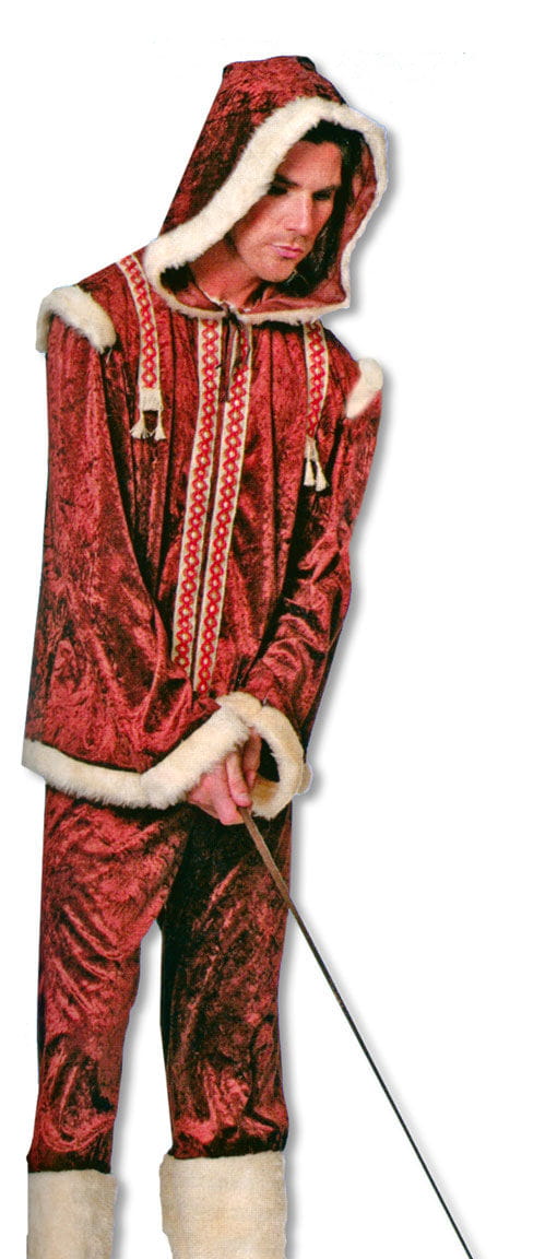 Eskimo MännerkostümFür kalte Karnevalstage und kuschelige MomenteWenn man an Eskimos denkt, fallen einem meist kalte Tage, Eisfischen, Huskys und die Arktis ein. Eskimos haben eine breite Kultur und sind ein ganz spezielles Völkchen. Alleine schon der Eskimo Kuss ist weit verbreitet und eine gute Art sich jemanden anzunähern.Das flauschige Eskimo Männerkostüm ist sehr gut verarbeitet und zeichnet sich durch kleine Besonderheiten aus. Das Inuit Kostüm besteht aus zwei Teilen. Das Kapuzen Oberteil ist in Erdfarben gehalten und und hat an mehreren Stellen einen hellen Kunstfellbesatz. An der Vorderseite ist eine Eskimokultur typische bestickte Borte mit kleinen Kordeln. Die Hose wurde mit dem gleichen Stoff verarbeitet und weist am unteren Teil einen ebenso beigen Fellbesatz auf. Der Stoff lässt sich leicht und locker tragen, so dass es möglich ist, bei sehr kalten Tagen noch etwas darunter zu ziehen. Der Hosenbund ist sehr bequem, da er mit einem Gummizug versehen ist. Um deinem Outfit noch das gewisse Etwas zu geben könntest du dich von einer Dame im Eskimo Damen Kostüm begleiten lassen und jedem deinen großen Fang zeigen mit dem Sardinenzopf .Material: 100% Polyester