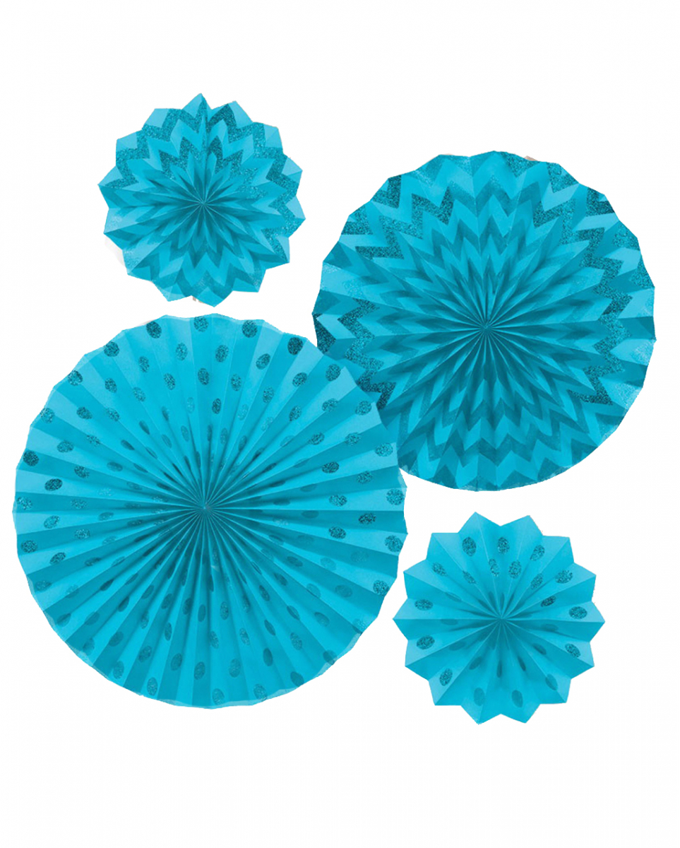 Fächer Deko Set Türkis für Parties und Feiern Türkise Hänge-Deko aus Papier für festliche Anlässe Türkise Papierfächer zum Hängen sind die perfekte Deko-Idee für Geburtstage, Karneval, Hochzeit und Sommerfest. Das Fächer Deko Set Türkis für Parties ist schnell angebracht und wirkt in kleinen und größeren Räumen sehr feierlich. Sorge für frische Deko-Akzente und bestelle diese einzigartige Party-Deko aus Papier! Dein Paket enthält ein stimmungsvolles Fächer Deko Set Türkis bestehend aus 4 unterschiedlich großen Papierfächern. Die türkise Papier-Dekoration kann im Innenbereich angebracht werden, ist bei trockenem Wetter aber auch für den Garten geeignet. Die türkisen Papier-Rosetten zum Hängen können mit weiteren Papierfächern, bunten Ballons und Girlanden kombiniert werden. Lieferumfang: 1 x Fächer Deko Set Türkis für Parties und Feiern Inhalt: 4 Fächer Farbe: Türkis Größe: 1 x 40 cm , 1 x 30 cm , 2 x 20 cm Material: Papier Der Artikel ist ein Dekorationsartikel und kein Spielzeug. Von Feuer und offenen Flammen fernhalten.