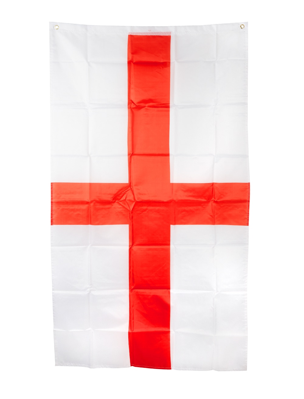 Fahne England 150 x 90cm: Dein Herz schlägt für das Mutterland der Queen oder Du bist einfach nur ein großer Fan von Chelsea oder Manchester United? Dann brauchst Du natürlich diese England-Fahne. Sie ist selbstverständlich in den Nationfarben Englands gehalten: das rote Georgskreuz auf weißem Hintergrund. Die Fahne ist 150 x 90 cm groß und lässt sich leicht an einer Wand anbringen oder umhängen. Einem echten Englandfan darf eine echte England-Fahne einfach nicht fehlen, denn sie drückt Deine Verbundenheit mit dem Land aus. Material: 100% Polyester