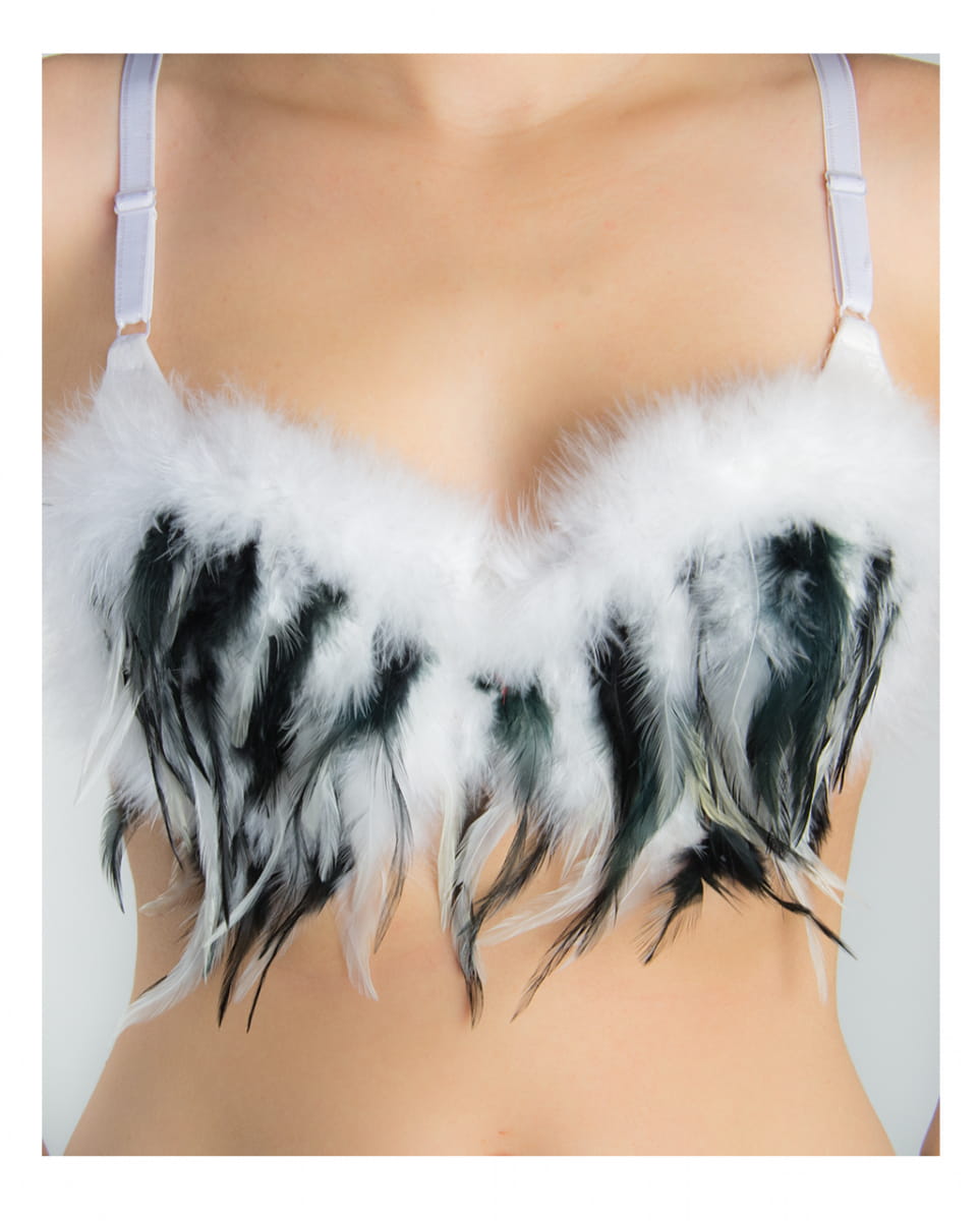 Weiß-Schwarzes Feder Bustier als Kostümzubehör für Karneval und Techno Events Sexy Feder BH für deine ausgefallenen Faschings Verkleidungen Das weiß-schwarze Feder Bustier ist ein Bügel BH, der aus einem festen Push up Körbchen besteht. In der Techno Szene und Karneval in Rio de Janeiro werden gerne federweiche Kurztops und BH’s getragen, deshalb ist das Kostümzubehör das optimale Top für deine Tanz Events. Am Rücken, sowie an beiden Schultern ist das Bustier selbstverständlich grössenverstellbar. Das BH-Top eignet sich natürlich auch als Verkleidung für deine Faschings- und Karneval Events. Lieferumfang: 1x Weiß-Schwarzes Feder Bustier als Kostümzubehör für Karneval und Techno Events Inhalt: 1 Stück Farbe: Weiß/Schwarz Größe: BH Größe ca. 75B, Träger und Umfang verstellbar Material: 70% Polyester, 30% Baumwolle, Federn ausgefallenes Kostüm-Zubehör