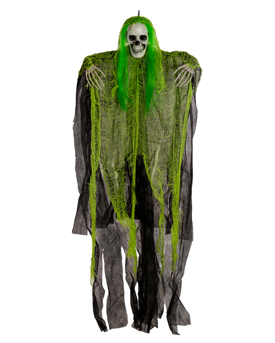 Fetzengeist mit Totenkopf und Neongrünen Haaren 110 cm Preisgünstige Halloween Hängefigur mit Neon-leuchtender Haarpracht als schaurige Geisterhaus Deko Der Fetzengeist mit Totenkopf und Neongrünen Haaren wird deine Halloween-Deko auf ein neues Level heben. Stelle dir vor, wie das Gespenst an der Decke schwebt und sein neongrünes Haar ein unheimliches Flair kreiert, wenn es mit UV-Licht angeleuchtet wird. Der Fetzengeist mit Totenkopf und Neongrünen Haaren ist aus Kunststoff, Polyester und Draht gefertigt und misst ca. 110 x 60 x 19 cm. Seine biegsamen Arme ermöglichen es dir, es flexibel zu positionieren und so den perfekten Gruseleffekt zu erzielen. Lieferumfang: 1 x Fetzengeist mit Totenkopf und Neongrünen Haaren 110cm Farbe: Schwarz, Grau, Beige, Neongrün Größe: ca. 110 x 60 x 19 cm Material: Kunststoff, Polyester, Draht Cooles Fetzengespenst mit Neongrün leuchtenden, langen Haaren Die Haare leuchten auffällig im UV-Lichte Preiswerte Halloween Hängefigur als vielseitige Dekoration Biegsame Arme zum flexiblen Positionieren Reine Hängedekoration ohne Funktion, keinen Sound, kein Licht, keine Bewegung Der Artikel ist eine Halloween Deko Figur und kein Spielzeug. Nicht für Kinder unter 3 Jahren geeignet. Kann Kleinteile enthalten, die verschluckt werden können – Erstickungsgefahr. Von Feuer und offenen Flammen fernhalten.