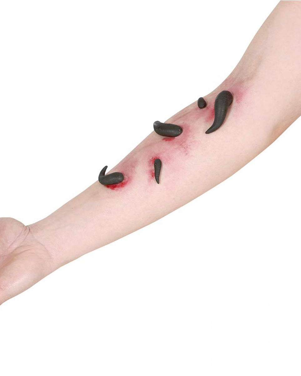 Ultra gemeine Blutegel 5 St. als ekeliges Halloween Make Up Wirklichkeitsgetreue Blutegel aus Latex als Scherzartikel und Spezial Make-up Effekt Bestelle dir jetzt die fünf unterschiedlich aussehenden Blutegel und präsentiere diese deinem Gegenüber, wenn du aus dem Wasser oder regennassen Wald kommst. Der Unterschied zu einer schon lange im Wasser liegenden Leiche, ist dann nicht mehr so fern. Die fünf Blutegel lassen sich prima mit Hautkleber (Mastix) auf der Haut befestigen und immer wieder benutzen. Das Ganze vielleicht zusätzlich noch mit ein wenig Filmblut perfektionieren und ein schockierender Anblick ist garantiert! Lieferumfang: 1 x Ultra Gemeine Blutegel 5 St. als ekeliges Halloween Make Up Inhalt: 5 Stück Farbe: Braun Größe: ca. 4 cm Material: 100% Latex Schockierender Scherzartikel und Make-up Effekt Die Blutegel lassen sich mit Mastix (Hautkleber) anbringen Vielseitig als realistische Unfalldarstellung und Spezial FX Make-up einsetzbar Können öfter wiederverwendet werden Filmblut nicht inkl. Nicht für Kinder unter 3 Jahren geeignet. Kann Kleinteile enthalten, die verschluckt werden können – Erstickungsgefahr.