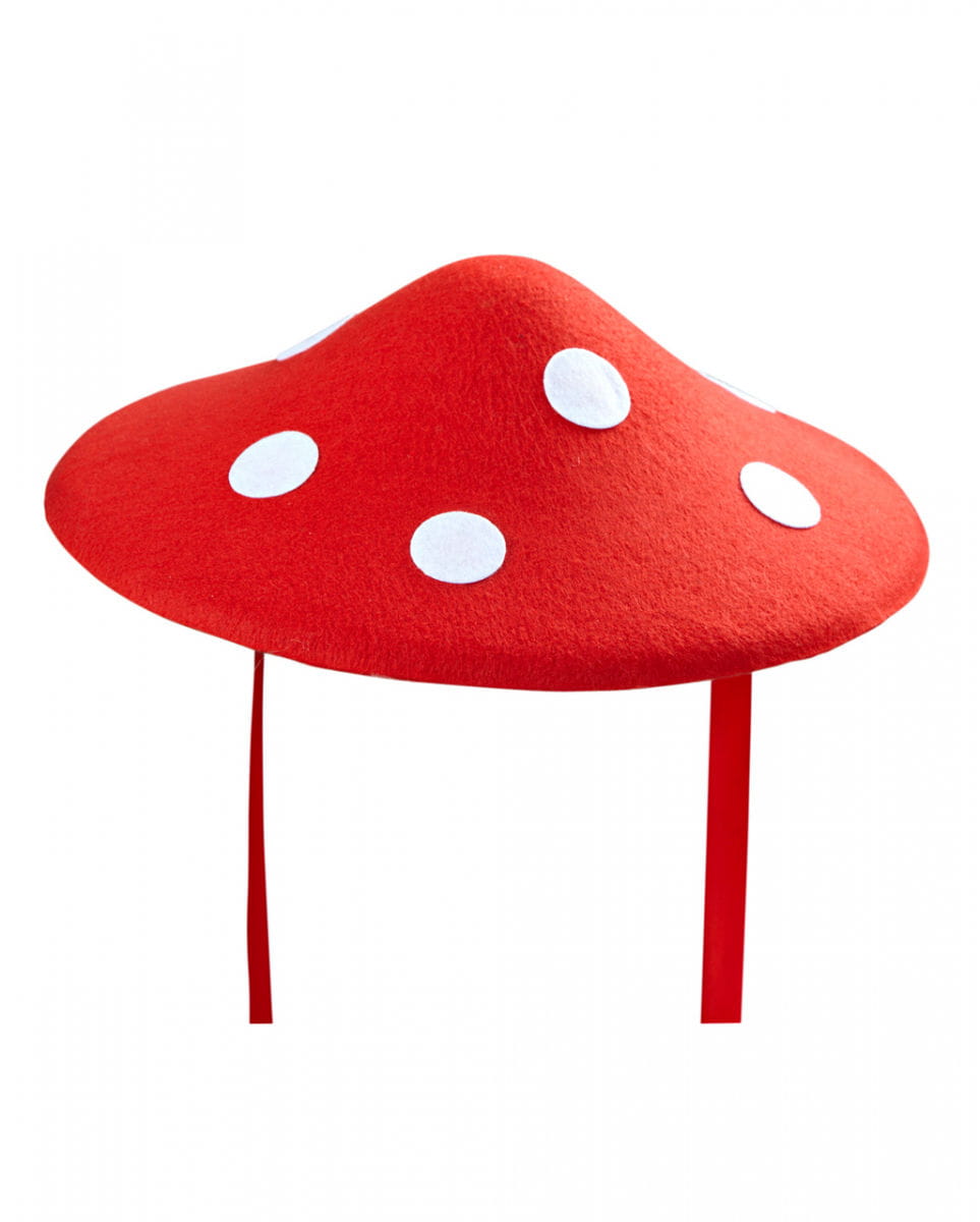 Hut in Pilzeform Für jeden witzigen Anlass wie Faschings Partys empfehlen wir unseren Hut in Pilzenform für Jugendliche und Erwachsene. Der Hut in Pilzform ist aus rotem Filzstoff gefertigt. Die Fliegenpilze Mütze wurde mit weißen Punkten dekoriert. Den Giftpilz Hut kannst du mit den angebrachten roten Schleifen an deinem Kopf befestigen.• Lieferumfang: 1x Hut in Pilzeform • Größe: One size • Farbe: Rot, weiß • Material: Filz