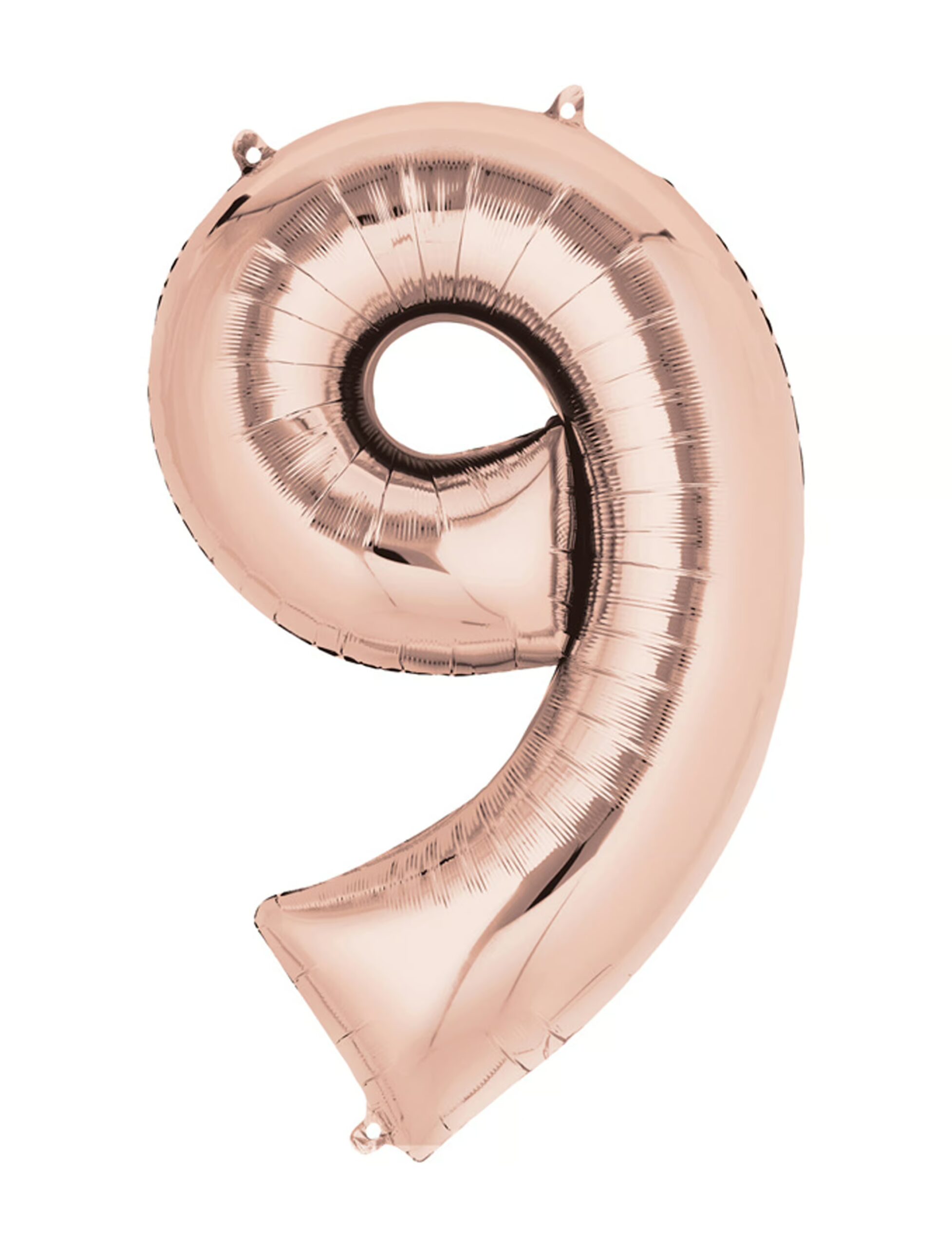 Folienballon rose/gold Zahl 9 L, ideal für Karneval & Fasching
