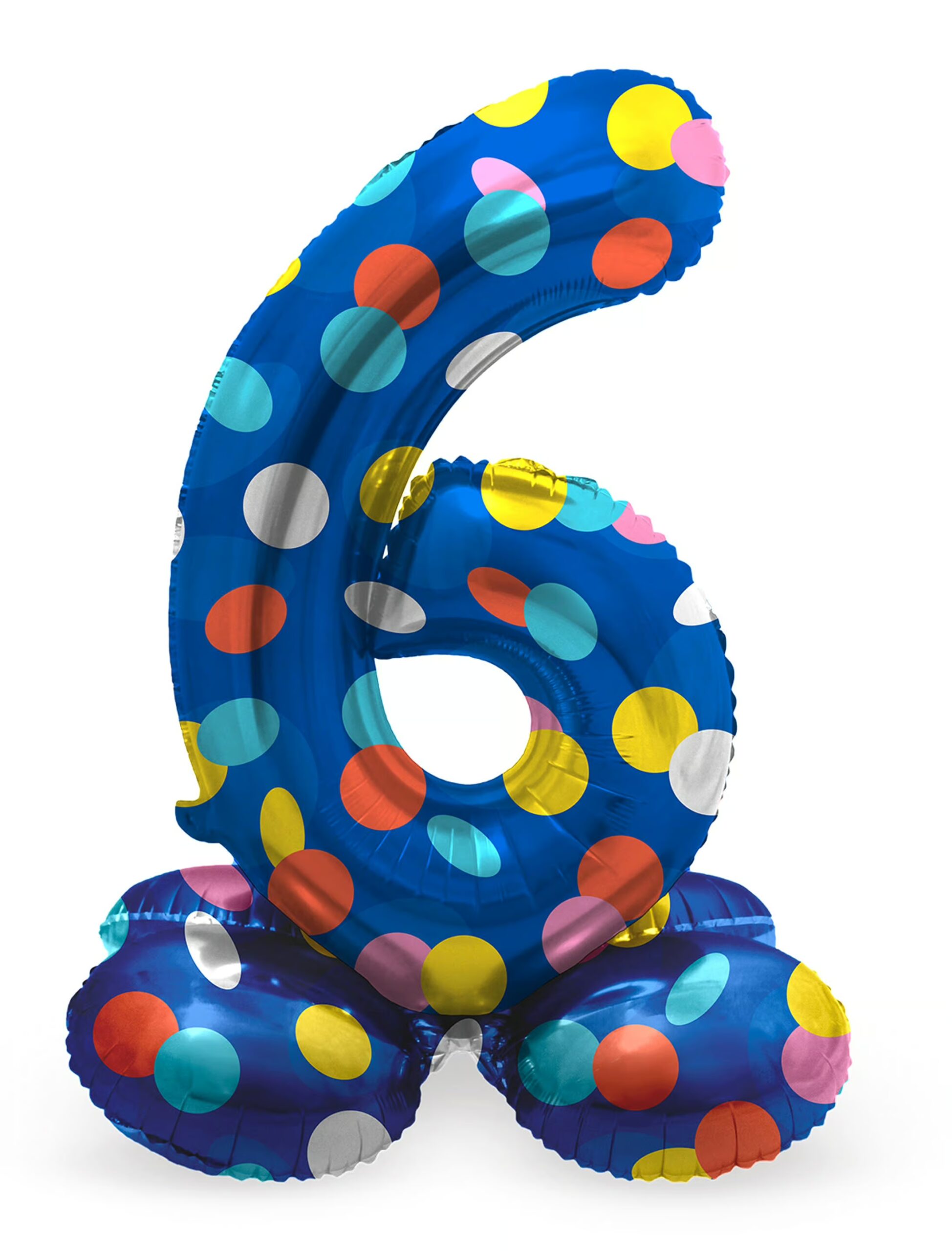 Folienballon stehend Dots Zahl 6 Farbe: bunt