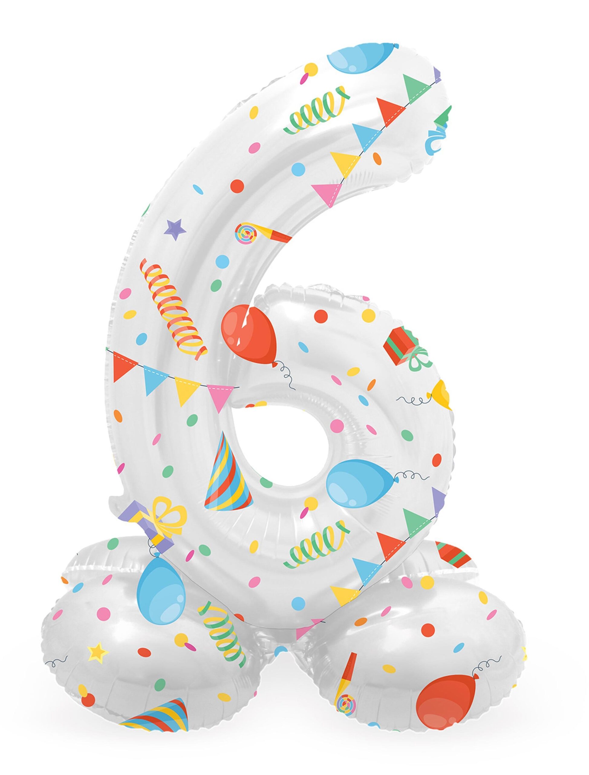 Folienballon stehend Party Zahl 6 Farbe: bunt