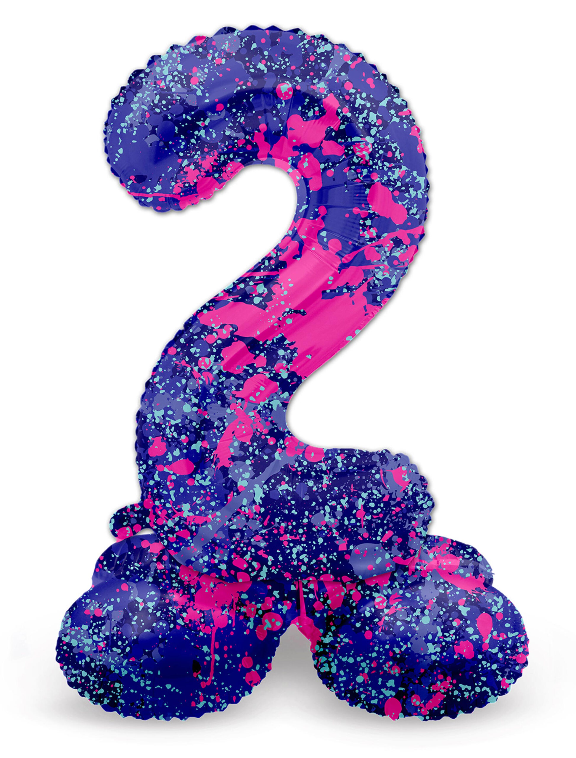 Folienballon stehend Splash Zahl 2, ideal für Karneval & Fasching