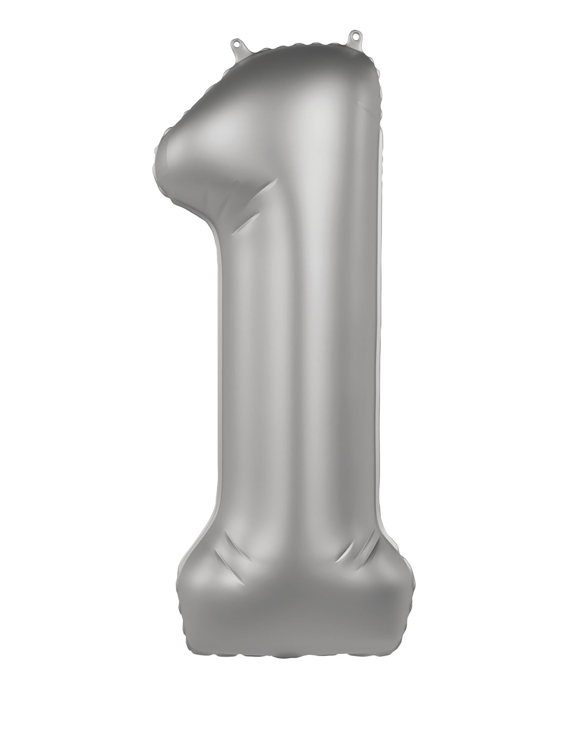 Folienballon Zahl 1 L matt silber, ideal für Geburtstag / Jubiläum