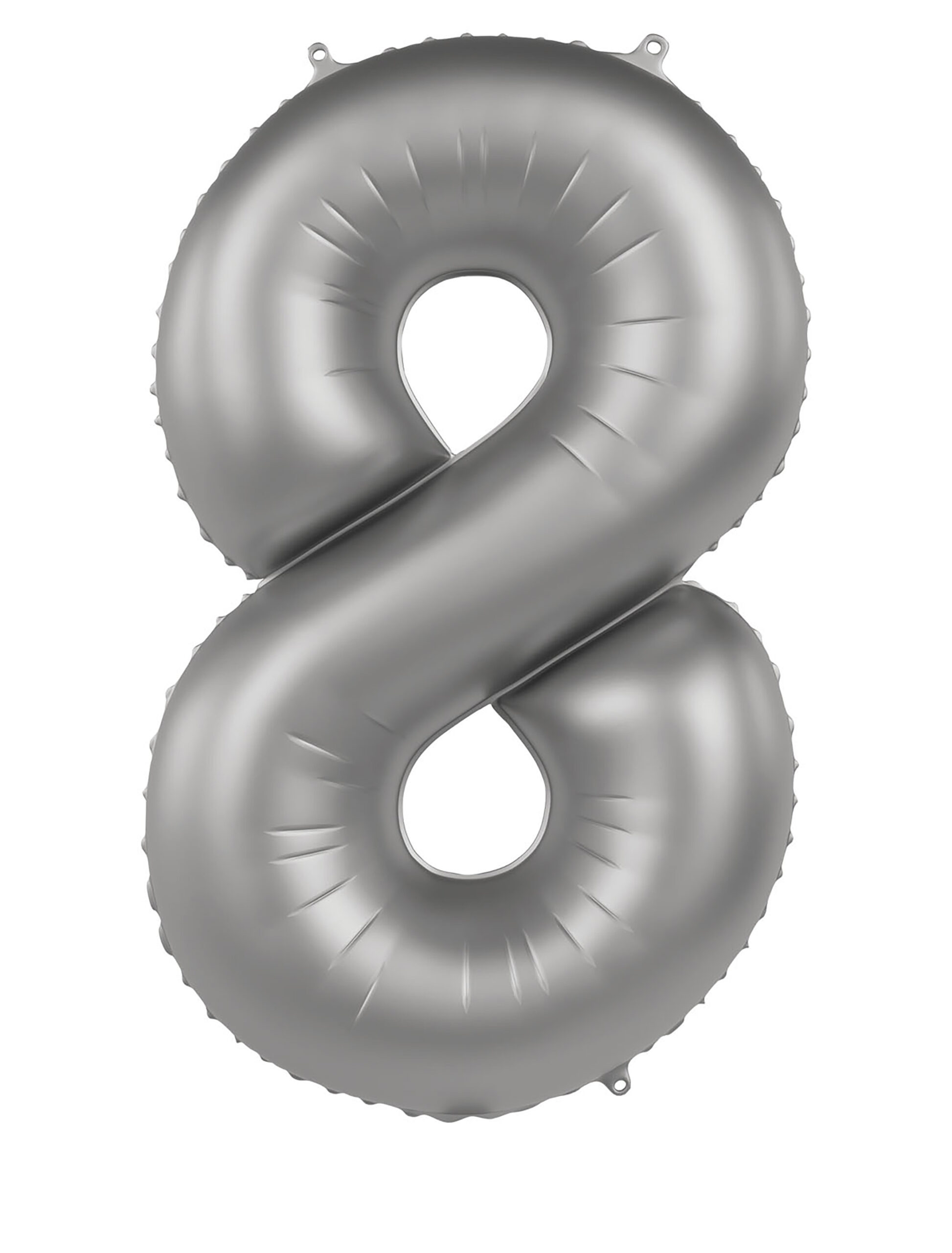 Folienballon Zahl 8 L matt silber, ideal für Geburtstag / Jubiläum